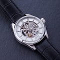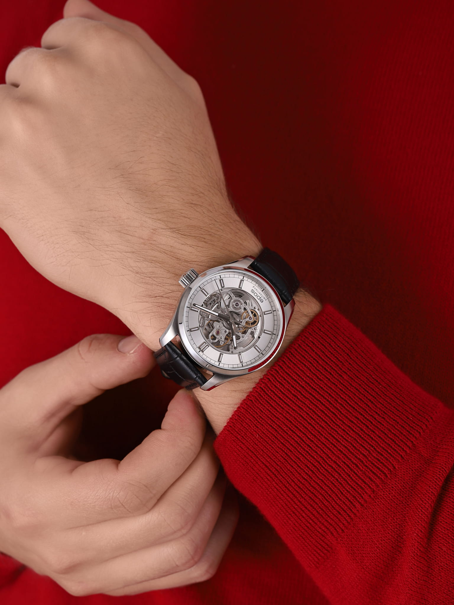 Мужские механические часы с автоподзаводом Epos из коллекции Passion — это сочетание швейцарского мастерства и современного дизайна. Корпус диаметром 41 мм и толщиной 11 мм выполнен из нержавеющей стали 316L. Циферблат серебристого цвета частично скелетонизирован, что позволяет наблюдать за работой механизма. Циферблат защищён сапфировым стекломСапфировое стеклоПрочный и надёжный материал из кристалла сапфира синтетического происхождения, характеризующийся особой твёрдостью и устойчивостью к царапинам и повреждениям.. Стрелки и метки с люминесцентным покрытиемЛюминесцентное покрытиеПозволяет считывать показания времени в темноте. Производители наносят на стрелки, часовые индексы, безель или поверхность циферблата светонакопительный состав, дающий холодное свечение., обеспечивающим хорошую читаемость в темноте. Механизм — швейцарский калибр Sellita SW200. Прозрачная задняя крышка открывает вид на декорированный механизм. Часы оснащены кожаным ремешком чёрного цвета со стандартной застёжкой. Водонепроницаемость 100 м позволяет использовать часы для плавания и повседневного ношения. Гарантия — 24 месяца. Универсальный выбор для ценителя механики и выразительного стиля.