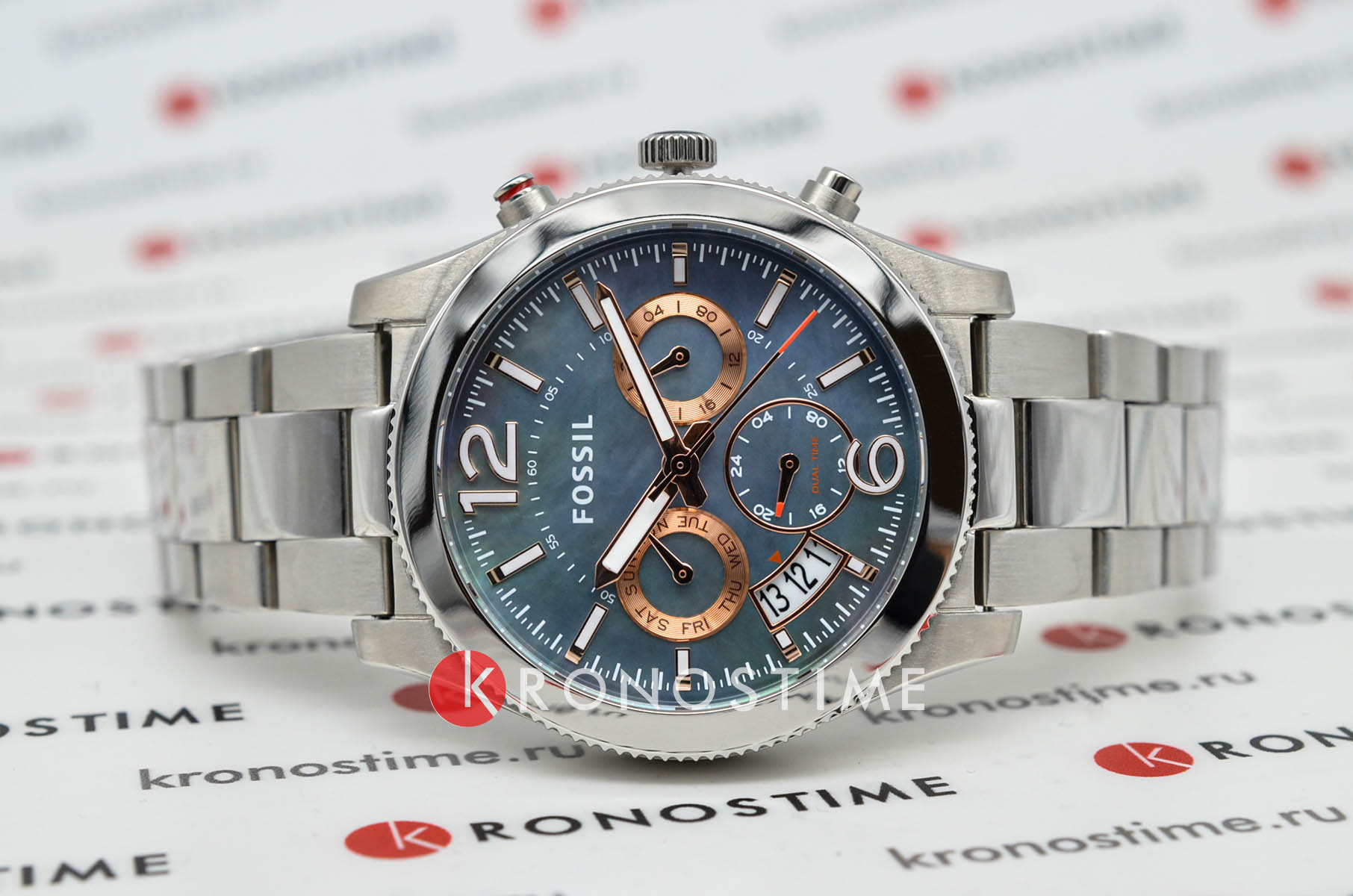Наручные часы от популярного американского бренда Fossil - они будут замечательно смотреться как с повседневным стилем одежды, так и костюмом; браслет: сталь; корпус: сталь; цвет браслета: серебро; цвет корпуса: серебро; цвет циферблата: комбинированный; ширина браслета: 20MM; водонепроницаемость: 5 ATM; диаметр корпуса: 40MM