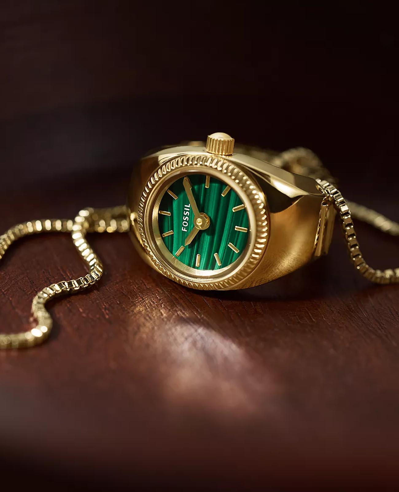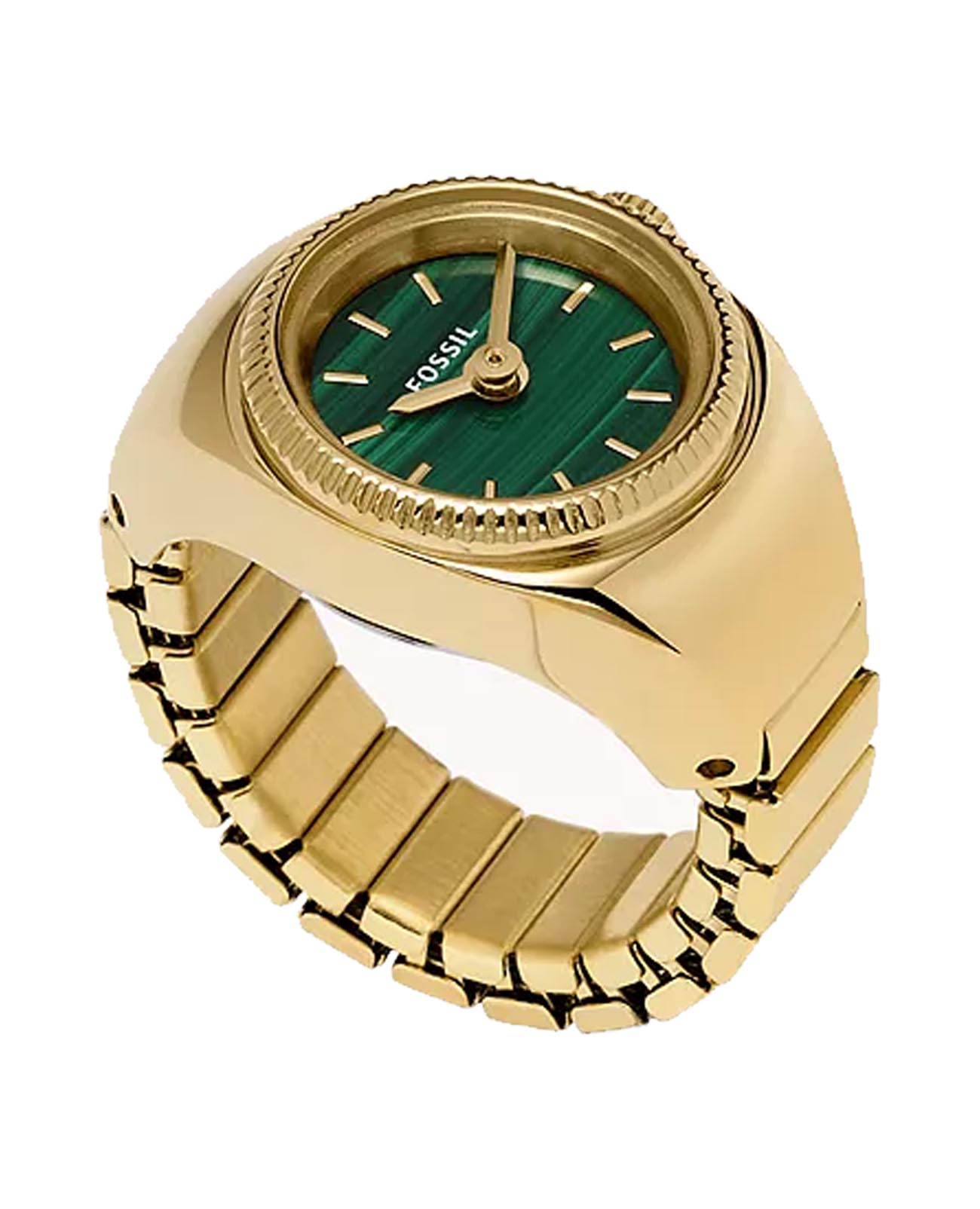 Уникальные часы-кольцо с минеральным стекломМинеральное стеклоМинеральное стекло представляет собой искусственно выращенный минерал кварца. Такое стекло отличается особой устойчивостью к повреждениям и царапинам. Уступает по некоторым качествам сапфировому стеклу. Fossil Raquel ES5308, кварцевый механизм с высокой точностью. Корпус и браслет часов изготовлены из нержавеющей стали с IP-покрытиемIP-покрытиеМетод ионного напыления. Демонстрирует повышенную устойчивость к истиранию, окислению и химическим веществам. Под воздействием высокого давления и температуры около 1500°C молекулы металла надёжно соединяются с частицами корпуса часов.. Класс водозащиты: 50 метров, позволит защитить корпус от случайных брызг или капель дождя.