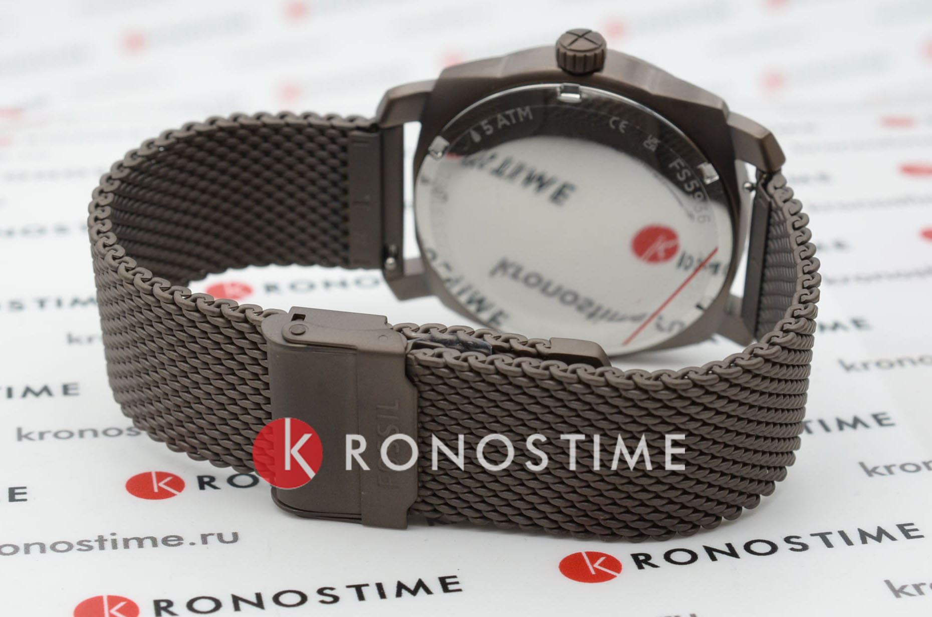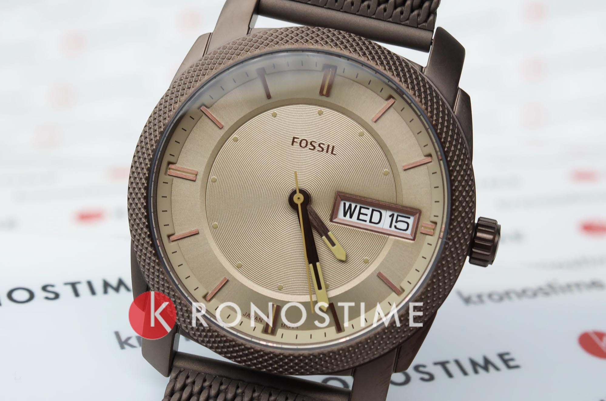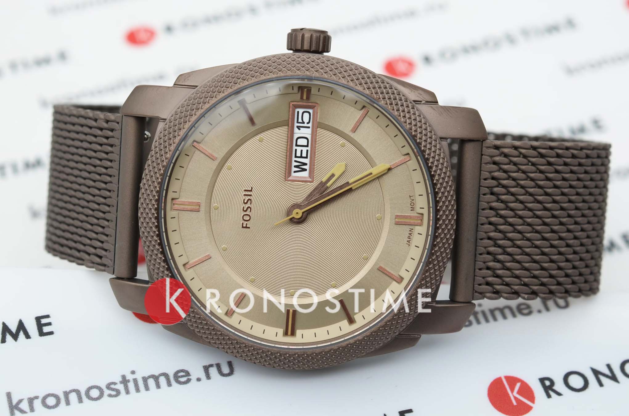 Мужские наручные часы на миланском браслете Fossil Machine FS5936, кварцевый механизм с высокой точностью. Класс водозащиты: 50 метров, позволит защитить корпус от случайных брызг или капель дождя. Корпус часов изготовлен из стали с IP-покрытиемIP-покрытиеМетод ионного напыления. Демонстрирует повышенную устойчивость к истиранию, окислению и химическим веществам. Под воздействием высокого давления и температуры около 1500°C молекулы металла надёжно соединяются с частицами корпуса часов. коричневого цвета. БезельБезельВнешний ободок, закрепляющий стекло. В спортивных часах так называется поворотное кольцо с делениями на циферблате, выполняет роль таймера – замеряет отрезки времени на шкале. Неподвижный безель – элемент декора. Однонаправленно вращающийся безель на дайверских часах позволяет фиксировать моменты погружения и выныривания на поверхность. с фактурной поверхностью обрамляет круглый корпус с рифленой заводной головкой. На циферблате расположены метки в виде штрихов и окошко даты и дня недели в положении 3 часа.