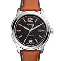 Наручные часы Fossil Heritage ME3233 с надёжным автоматическим механизмом. Корпус часов изготовлен из нержавеющей стали. Минеральное стеклоМинеральное стеклоМинеральное стекло представляет собой искусственно выращенный минерал кварца. Такое стекло отличается особой устойчивостью к повреждениям и царапинам. Уступает по некоторым качествам сапфировому стеклу. устойчивое к мелким механическим повреждениям. Кожаный ремешок на стандартной застёжке. Класс водозащиты: 50 метров, позволит защитить корпус от случайных брызг или капель дождя. Стрелки и метки с люминесцентным покрытиемЛюминесцентное покрытиеПозволяет считывать показания времени в темноте. Производители наносят на стрелки, часовые индексы, безель или поверхность циферблата светонакопительный состав, дающий холодное свечение.. Окошко даты находится в положении 3 часа.