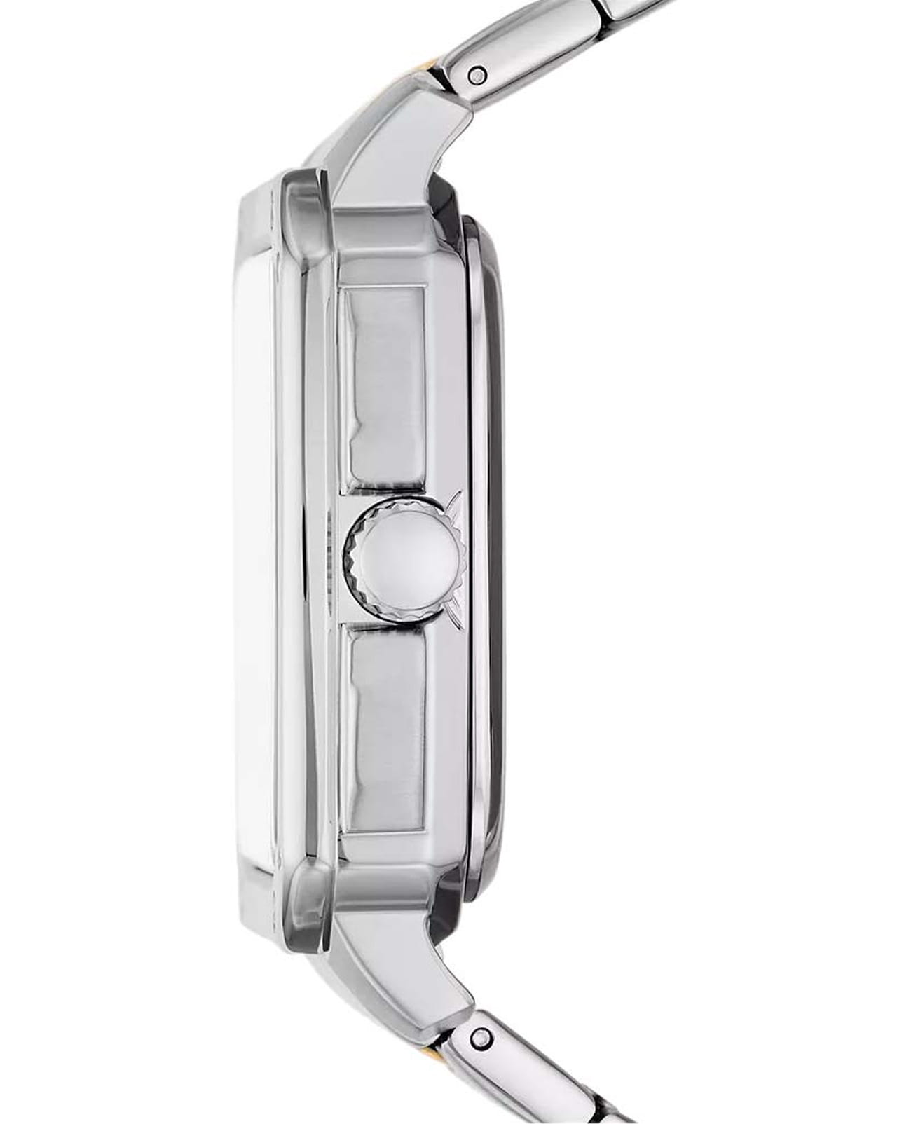 Мужские американские механические часы с автоподзаводом и с минеральным стекломМинеральное стеклоМинеральное стекло представляет собой искусственно выращенный минерал кварца. Такое стекло отличается особой устойчивостью к повреждениям и царапинам. Уступает по некоторым качествам сапфировому стеклу. Fossil Inscription ME3237, кварцевый механизм с высокой точностью. Прямоугольный корпус часов изготовлен из нержавеющей стали. БезельБезельВнешний ободок, закрепляющий стекло. В спортивных часах так называется поворотное кольцо с делениями на циферблате, выполняет роль таймера – замеряет отрезки времени на шкале. Неподвижный безель – элемент декора. Однонаправленно вращающийся безель на дайверских часах позволяет фиксировать моменты погружения и выныривания на поверхность. дополнен стильными винтами. Прозрачное окошко на текстурированном циферблате позволяет наблюдать за мерным ходом часового механизма. Метки в виде штрихов. Рифленая заводная головка. Метки и стрелки с люминесцентным покрытиемЛюминесцентное покрытиеПозволяет считывать показания времени в темноте. Производители наносят на стрелки, часовые индексы, безель или поверхность циферблата светонакопительный состав, дающий холодное свечение.. Рифленая заводная головка с защитой. Класс водозащиты: 50 метров, позволит защитить корпус от случайных брызг или капель дождя. Стальной браслет с частичным IP-покрытиемIP-покрытиеМетод ионного напыления. Демонстрирует повышенную устойчивость к истиранию, окислению и химическим веществам. Под воздействием высокого давления и температуры около 1500°C молекулы металла надёжно соединяются с частицами корпуса часов. на раскладной застёжкеРаскладная застёжкаТакой тип застёжки используется только на браслетах из металла. Она никогда не раскрывается полностью, происходит разделение на 2 и более частей. Раскладывающая застёжка снизит вероятность потери часов к минимуму..