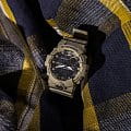 Аксессуар песочного оттенка подходит для людей, которые следят за здоровьем и регулярно посещают тренировки. Этому способствует шагомер со звуковым напоминанием об отсутствии активности и технология BluetoothBluetoothСовременная технология, позволяющая синхронизировать часы с телефоном и переносить данные. Часы с Bluetooth расширяют возможности вашего смартфона и делают его использование ещё более удобным. с низким потреблением энергии. Часы синхронизируются с приложением G-SHOCK Connected Phone, в котором можно установить ежедневную норму шагов, рассчитать сожжённые калории. Японский кварцевый механизм получает питание от аккумулятора, рассчитанного на 2 года службы. Противоударный корпусУдаропрочный корпусМеханизм заключён в корпус, выполненный из современных материалов, устойчивых к ударам, механическим повреждениям и падению с высоты: инновационный пластик, карбон, нержавеющая сталь, титан. из пластика. Функция перемещения стрелок для лёгкого доступа к данным на цифровых дисплеях. Включение и выключение звука кнопок. Полимерный ремешок. Минеральное стекло. Водонепроницаемость 200 метров. Автоматическая светодиодная подсветкаСветодиодная подсветкаСветодиодная или LED-подсветка обеспечивает появление яркого холодного свечения за счёт LED-элементов - маленьких лампочек. Они потребляют минимальное количество энергии, чаще всего можно встретить 1 светодиод, в нижней части циферблата., стрелки с люминесцентным покрытием NeobriteПодсветка NeobriteИспользование светонакопительных составов на основе сульфида цинка или алюмината стронция, яркий свет можно наблюдать на протяжении 6-10 часов после «зарядки» часов около источника света.. Возможности: секундомер с памятью на 200 кругов, мировое времяМировое время Полезное часовое усложнение, отображающее время в основных городах и известных областях по всему миру, оно связано с часовыми поясами, удобно для путешественников и бизнесменов. , таймер обратного отсчёта, 5 будильников, календарь до 2099 года, хронографХронографФункция позволяет измерять отрезки времени с особой точностью: часы, минуты, секунды. Верным признаком хронографа является наличие на циферблате 3 дополнительных окошек-счётчиков.. Габариты: 54,1 x 48,6 x 15,5 мм.