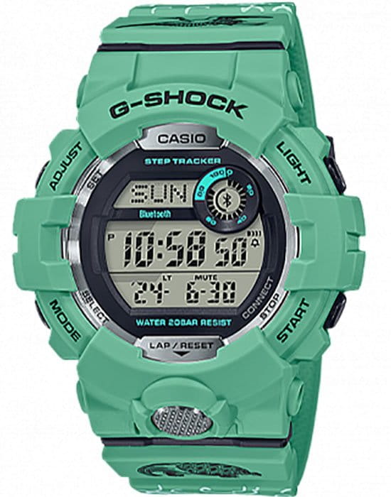 Часы представлены в зеленом цвете, ремешок украшен фольклорный линеарный узор Напомним, что модель является одной из 7 моделей в лимитированной серии "The G-Shock Seven Lucky Gods", причастной различным азиатским божествам