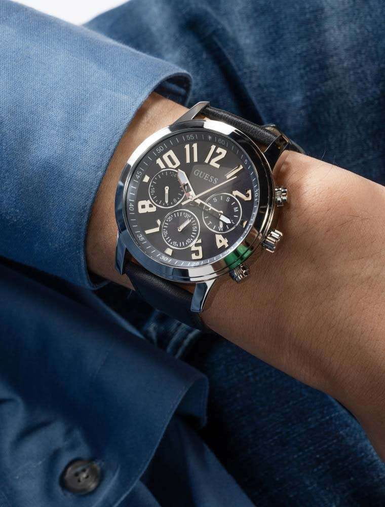 Часы Guess GW0709G1 — это стильный и функциональный аксессуар, который поможет вам всегда быть в курсе времени, независимо от обстоятельств. Эти мужские часы оснащены надежным кварцевым механизмом и имеют круглый стальной корпус диаметром 44 мм и толщиной 13 мм. Черный циферблат, выполненный по технологии Sunray, создает эффект солнечных лучей, добавляя глубину и элегантность дизайну. Циферблат оснащен метками в виде арабских цифр и поддерживает 12-ти и 24-х часовой формат времени. Отдельные циферблаты для отображения даты и дня недели делают использование часов особенно удобным. Люминесцентное покрытиеЛюминесцентное покрытиеПозволяет считывать показания времени в темноте. Производители наносят на стрелки, часовые индексы, безель или поверхность циферблата светонакопительный состав, дающий холодное свечение. на стрелках обеспечивает отличную видимость в темноте. Рифленая заводная головка обеспечивает дополнительный комфорт в эксплуатации. Кожаный ремешок с классической застежкой обеспечивает надежную фиксацию на запястье, добавляя комфорта и стиля. Минеральное стеклоМинеральное стеклоМинеральное стекло представляет собой искусственно выращенный минерал кварца. Такое стекло отличается особой устойчивостью к повреждениям и царапинам. Уступает по некоторым качествам сапфировому стеклу. защищает циферблат от царапин и повреждений, а водозащита 50WR позволяет не беспокоиться о случайном попадании воды. Эти часы станут отличным дополнением вашего образа, подчеркивая ваш вкус и внимание к деталям.