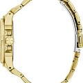 Элегантные женские наручные часы Guess GW0878L2 сочетают в себе стиль и функциональность. Эти часы оснащены точным кварцевым механизмом, что гарантирует надежность и долговечность. Корпус часов выполнен из прочной нержавеющей стали с PVD-покрытиемPVDУльтратонкое покрытие наносится в технике вакуумного напыления, сочетает в себе нитрид титана особой прочности со слоем золота или оксида хрома. Несёт в себе декоративную или защитную функцию. золотистого цвета, диаметром 38 мм, а безельБезельВнешний ободок, закрепляющий стекло. В спортивных часах так называется поворотное кольцо с делениями на циферблате, выполняет роль таймера – замеряет отрезки времени на шкале. Неподвижный безель – элемент декора. Однонаправленно вращающийся безель на дайверских часах позволяет фиксировать моменты погружения и выныривания на поверхность. украшен изысканными кристаллами, придающими им роскошный вид. Циферблат добавляет изделию утонченности и особого шарма. Часы оснащены стальным браслетом с PVD-покрытиемPVDУльтратонкое покрытие наносится в технике вакуумного напыления, сочетает в себе нитрид титана особой прочности со слоем золота или оксида хрома. Несёт в себе декоративную или защитную функцию. на раскладной застежкеРаскладная застёжкаТакой тип застёжки используется только на браслетах из металла. Она никогда не раскрывается полностью, происходит разделение на 2 и более частей. Раскладывающая застёжка снизит вероятность потери часов к минимуму., которая обеспечивает комфортное прилегание к запястью и надежную фиксацию. Люминесцентное покрытиеЛюминесцентное покрытиеПозволяет считывать показания времени в темноте. Производители наносят на стрелки, часовые индексы, безель или поверхность циферблата светонакопительный состав, дающий холодное свечение. на стрелках обеспечивает отличную видимость в темноте. Минеральное стеклоМинеральное стеклоМинеральное стекло представляет собой искусственно выращенный минерал кварца. Такое стекло отличается особой устойчивостью к повреждениям и царапинам. Уступает по некоторым качествам сапфировому стеклу. защищает циферблат от царапин и повреждений, сохраняя его безупречный вид. Водозащита 30WR гарантирует защиту от случайных брызг и дождя, что делает эти часы практичным аксессуаром для повседневной жизни, 12-ти и 24-х часовой формат. Рифленая заводная головка с защитой. Guess – это не просто аксессуар, это заявление о вашем безупречном вкусе и стремлении к совершенству.