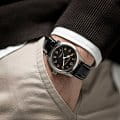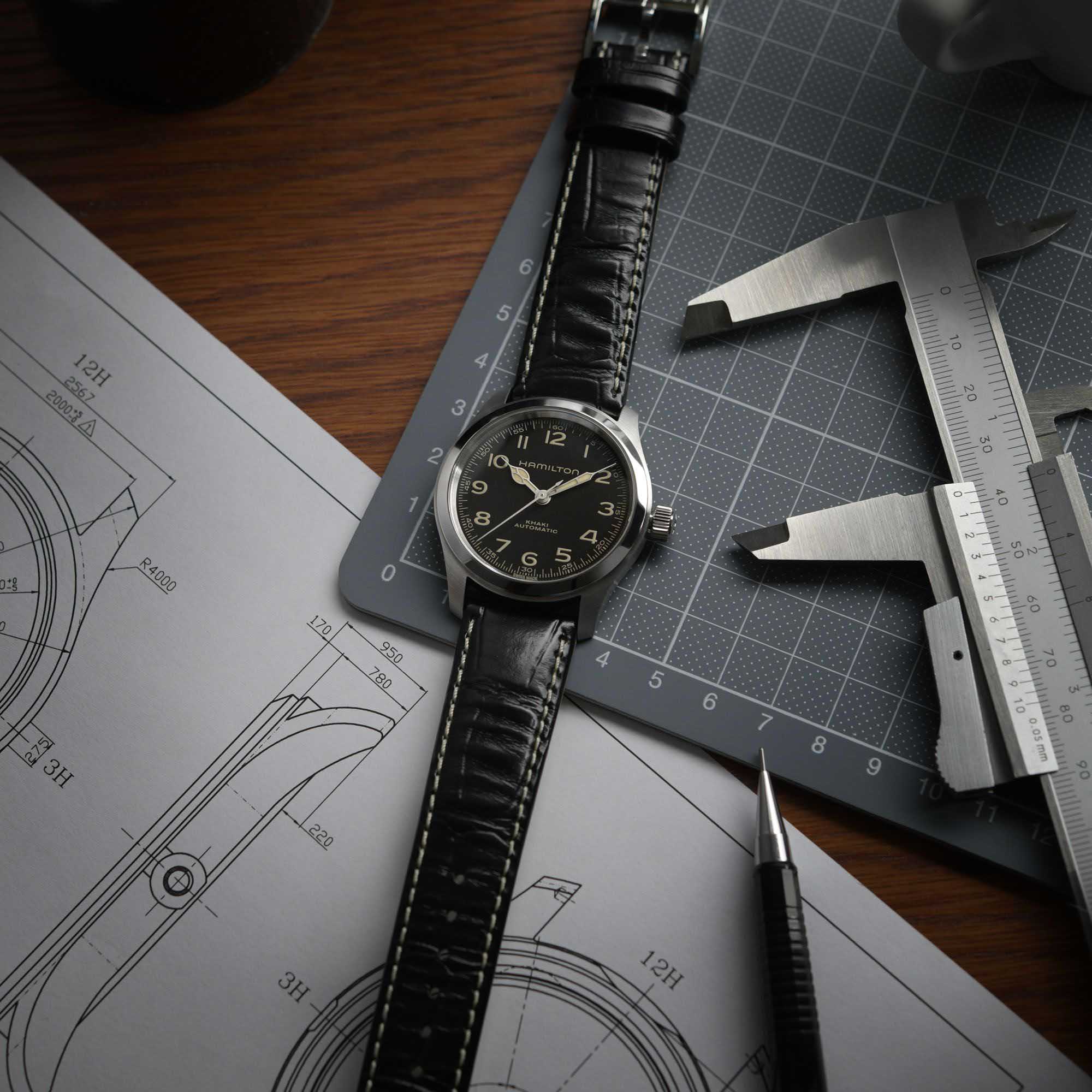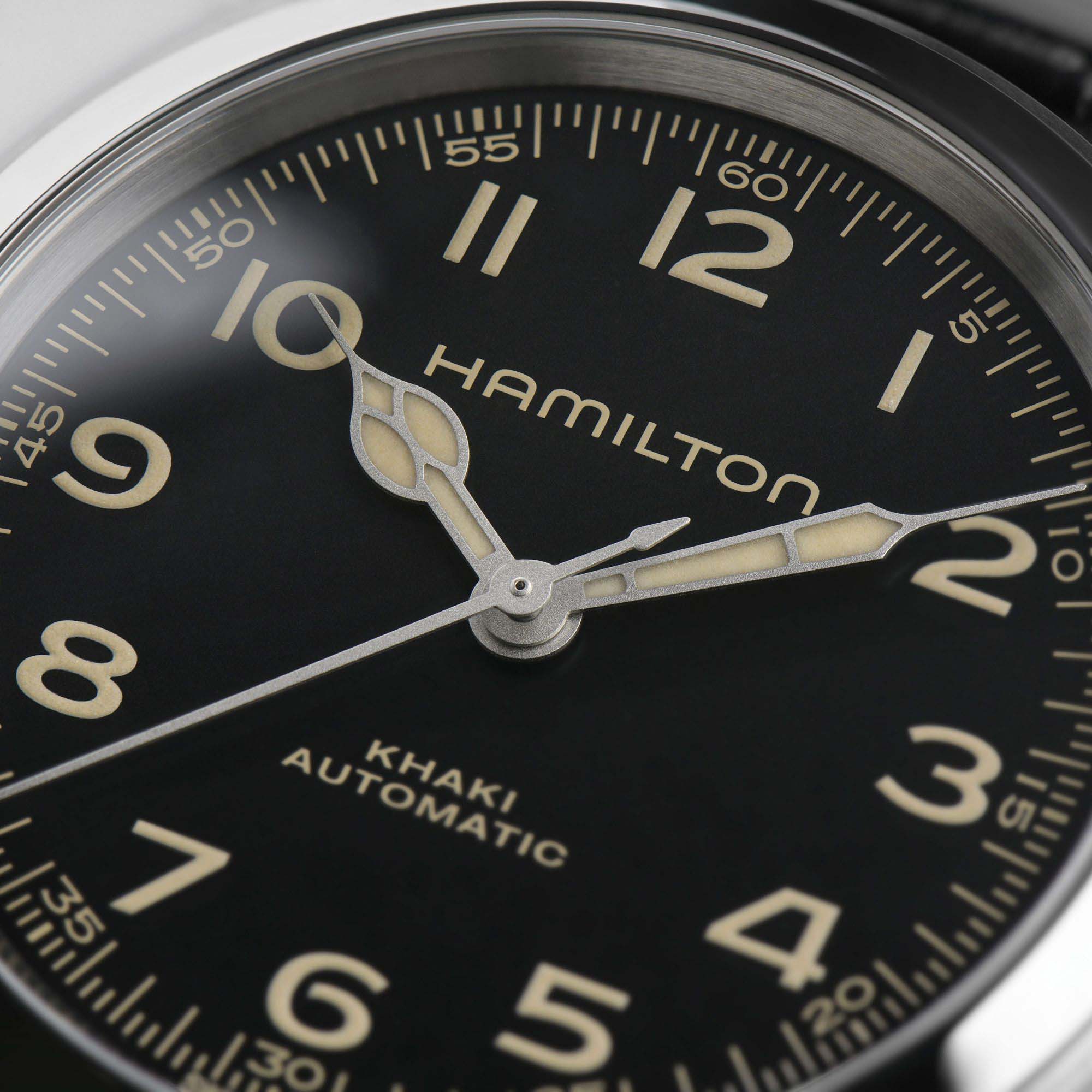 The Khaki Field Murph Auto. Одни из самых известных часов научной фантастики, известные поклонникам как "The Murphy", теперь заключены в компактный 38-миллиметровый корпус из нержавеющей стали. Ультрачитаемый черный циферблат, бежевые стрелки с люминесцентным покрытиемЛюминесцентное покрытиеПозволяет считывать показания времени в темноте. Производители наносят на стрелки, часовые индексы, безель или поверхность циферблата светонакопительный состав, дающий холодное свечение. Super-LumiNova ® в винтажном стиле и черный кожаный ремешок отражают ключевые эстетические коды своего 42-миллиметрового предшественника. Эти часы, оснащенные механизмом с автоподзаводом H-10 и обладающие 80-часовым запасом хода, покорят сердца тех, кто любит часы меньшего размера.