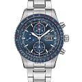Ориентируйтесь в небе с помощью нашего автоматического хронографаХронографФункция позволяет измерять отрезки времени с особой точностью: часы, минуты, секунды. Верным признаком хронографа является наличие на циферблате 3 дополнительных окошек-счётчиков. Khaki Aviation Converter Auto Chrono, оснащенного двунаправленным вращающимся безелемБезельВнешний ободок, закрепляющий стекло. В спортивных часах так называется поворотное кольцо с делениями на циферблате, выполняет роль таймера – замеряет отрезки времени на шкале. Неподвижный безель – элемент декора. Однонаправленно вращающийся безель на дайверских часах позволяет фиксировать моменты погружения и выныривания на поверхность. с логарифмической линейкой для быстрого расчета важнейших конверсий и показателей. Оснащенные механизмом H-21-Si с силиконовой пружиной для повышения производительности и точности, эти часы идеально сочетают функциональность и авиационную эстетику: 44-миллиметровый корпус из нержавеющей стали сочетается с браслетом из нержавеющей стали и синим циферблатом, напоминающим о чистом небе.