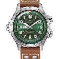 Мужские наручные часы Hamilton Khaki Aviation X-Wind Day Date Auto 45mm H77735560 сочетают в себе спортивный стиль и функциональность для профессионалов авиации. Модель обладает круглым корпусом диаметром 45 мм, изготовленным из нержавеющей стали, что обеспечивает высокую устойчивость к внешним воздействиям. Ремешок выполнен из кожи на стандартной застежке, гарантирующей комфортное ношение и безопасность. Зеленый циферблат оснащен крупными цифрами и стрелками с люминесцентным покрытиемЛюминесцентное покрытиеПозволяет считывать показания времени в темноте. Производители наносят на стрелки, часовые индексы, безель или поверхность циферблата светонакопительный состав, дающий холодное свечение. Super-LumiNova®, обеспечивающим превосходную видимость в темноте. Для защиты используется сапфировое стеклоСапфировое стеклоПрочный и надёжный материал из кристалла сапфира синтетического происхождения, характеризующийся особой твёрдостью и устойчивостью к царапинам и повреждениям., которое эффективно противостоит царапинам. Часы работают на автоматическом швейцарском механизме H-30, что обеспечивает точное время без необходимости подзаводки. Механизм с пружиной баланса Nivachron™Nivachron™Специально разработанный инновационный сплав Nivachron™ повышает устойчивость часов к воздействию магнитных полей. гарантирует точность хода, устойчивость к магнитным полям. Модель также оснащена функциями даты и дня недели, а также уникальным калькулятором угла сноса, который позволяет пилотам рассчитывать боковой ветер. Водонепроницаемость часов достигает 10 атмосфер (100 метров), что делает их подходящими для повседневного использования и активного отдыха. Это сочетание высокой прочности, точности и изысканного дизайна для уверенных в себе мужчин.