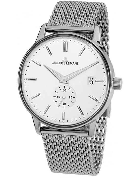 Наручные часы Jacques Lemans призваны ставить на первое место индивидуальный стиль владельца, классическая элегантность придётся по вкусу каждому. Брендовые часы привлекают минималистичным дизайном, отсутствие вычурности и обилия декорирующих элементов делают модель лучшим решением для ежедневного применения. Аксессуар можно носить с деловыми костюмами и повседневной одеждой, он органично сочетается как с классическими брюками, так и с рваными джинсами. Это настоящее часовое искусство высокого качества, часы считаются актуальным вариантом на все времена и с идеальной точностью показывают время благодаря надёжному японскому механизму.