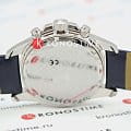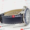 Кварцевый механизм с высокой точностью. БезельБезельВнешний ободок, закрепляющий стекло. В спортивных часах так называется поворотное кольцо с делениями на циферблате, выполняет роль таймера – замеряет отрезки времени на шкале. Неподвижный безель – элемент декора. Однонаправленно вращающийся безель на дайверских часах позволяет фиксировать моменты погружения и выныривания на поверхность. неповоротный. Минеральное стеклоМинеральное стеклоМинеральное стекло представляет собой искусственно выращенный минерал кварца. Такое стекло отличается особой устойчивостью к повреждениям и царапинам. Уступает по некоторым качествам сапфировому стеклу. устойчивое к появлению царапин, обладающее высокой прозрачностью.  Стрелки и метки с люминесцентным покрытиемЛюминесцентное покрытиеПозволяет считывать показания времени в темноте. Производители наносят на стрелки, часовые индексы, безель или поверхность циферблата светонакопительный состав, дающий холодное свечение.. Класс водозащиты: 200 метров, позволит плавать, нырять и заниматься другими водными видами спорта. Корпус часов изготовлен из нержавеющей стали. Кожаный ремешок с классической застежкой.