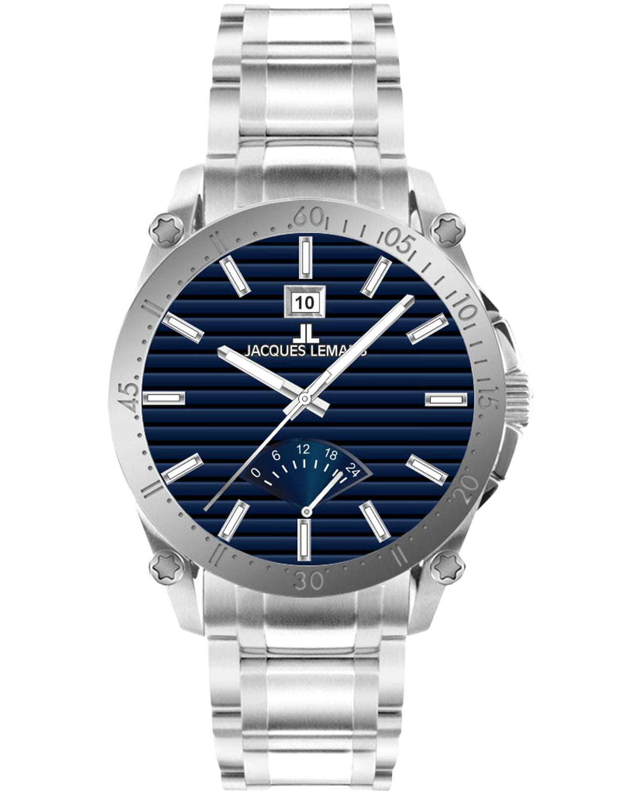 Мужские кварцевые часы Jacques Lemans 1-2202L – лаконичная красота и изысканная элегантность. Оригинальная модель с классическим оформлением станет превосходным завершением образа, наделив его индивидуальным характером. Корпус выполнен из нержавеющей стали, диаметром 44 мм, что обеспечивает долговечность и утончённый внешний вид. Минеральное стеклоМинеральное стеклоМинеральное стекло представляет собой искусственно выращенный минерал кварца. Такое стекло отличается особой устойчивостью к повреждениям и царапинам. Уступает по некоторым качествам сапфировому стеклу. с сапфировым напылением защищает циферблат от царапин. Стальной браслет на раскладной застёжкеРаскладная застёжкаТакой тип застёжки используется только на браслетах из металла. Она никогда не раскрывается полностью, происходит разделение на 2 и более частей. Раскладывающая застёжка снизит вероятность потери часов к минимуму. обеспечивает комфортное ношение. На неподвижный безельБезельВнешний ободок, закрепляющий стекло. В спортивных часах так называется поворотное кольцо с делениями на циферблате, выполняет роль таймера – замеряет отрезки времени на шкале. Неподвижный безель – элемент декора. Однонаправленно вращающийся безель на дайверских часах позволяет фиксировать моменты погружения и выныривания на поверхность. нанесена минутная шкала. Водозащита 100 метров позволит плавать, нырять и заниматься другими водными видами спорта. Стрелки и метки с люминесцентным покрытиемЛюминесцентное покрытиеПозволяет считывать показания времени в темноте. Производители наносят на стрелки, часовые индексы, безель или поверхность циферблата светонакопительный состав, дающий холодное свечение. позволяющие легко определять время даже в темноте. Окошко даты находится в положении 12 часов. Индикатор 24-х часов вынесен на отдельный циферблат. Рифленая заводная головка с защитой. Это аксессуар для мужчины, который ценит классический стиль и функциональность.