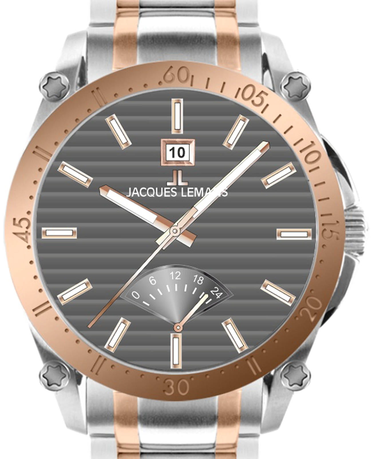Мужские кварцевые часы Jacques Lemans 1-2202O – лаконичная красота и изысканная элегантность. Оригинальная модель с классическим оформлением станет превосходным завершением образа, наделив его индивидуальным характером. Корпус выполнен из нержавеющей стали, диаметром 44 мм, что обеспечивает долговечность и утончённый внешний вид. Минеральное стеклоМинеральное стеклоМинеральное стекло представляет собой искусственно выращенный минерал кварца. Такое стекло отличается особой устойчивостью к повреждениям и царапинам. Уступает по некоторым качествам сапфировому стеклу. с сапфировым напылением защищает циферблат от царапин. Стальной браслет с частичным PVD-покрытиемPVDУльтратонкое покрытие наносится в технике вакуумного напыления, сочетает в себе нитрид титана особой прочности со слоем золота или оксида хрома. Несёт в себе декоративную или защитную функцию. на раскладной застёжкеРаскладная застёжкаТакой тип застёжки используется только на браслетах из металла. Она никогда не раскрывается полностью, происходит разделение на 2 и более частей. Раскладывающая застёжка снизит вероятность потери часов к минимуму. обеспечивает комфортное ношение. На неподвижный безельБезельВнешний ободок, закрепляющий стекло. В спортивных часах так называется поворотное кольцо с делениями на циферблате, выполняет роль таймера – замеряет отрезки времени на шкале. Неподвижный безель – элемент декора. Однонаправленно вращающийся безель на дайверских часах позволяет фиксировать моменты погружения и выныривания на поверхность. с PVD-покрытиемPVDУльтратонкое покрытие наносится в технике вакуумного напыления, сочетает в себе нитрид титана особой прочности со слоем золота или оксида хрома. Несёт в себе декоративную или защитную функцию. нанесена минутная шкала. Водозащита 100 метров позволит плавать, нырять и заниматься другими водными видами спорта. Стрелки и метки с люминесцентным покрытиемЛюминесцентное покрытиеПозволяет считывать показания времени в темноте. Производители наносят на стрелки, часовые индексы, безель или поверхность циферблата светонакопительный состав, дающий холодное свечение. позволяющие легко определять время даже в темноте. Окошко даты находится в положении 12 часов. Индикатор 24-х часов вынесен на отдельный циферблат. Рифленая заводная головка с защитой. Это аксессуар для мужчины, который ценит классический стиль и функциональность.