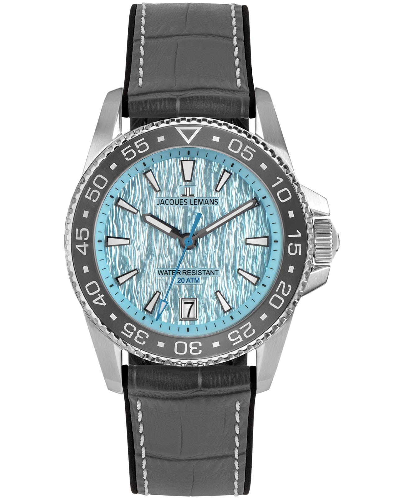 Мужские спортивные часы Jacques Lemans Liverpool Diver 1-2205F представляют собой стильный аксессуар, отражающий идеальное сочетание современного дизайна, надёжности и функциональности. Корпус из нержавеющей стали диаметром 41 мм идеально сбалансирован и элегантен. Ударопрочное минеральное стеклоМинеральное стеклоМинеральное стекло представляет собой искусственно выращенный минерал кварца. Такое стекло отличается особой устойчивостью к повреждениям и царапинам. Уступает по некоторым качествам сапфировому стеклу. Crystex защищает циферблат от царапин. Широкий безельБезельВнешний ободок, закрепляющий стекло. В спортивных часах так называется поворотное кольцо с делениями на циферблате, выполняет роль таймера – замеряет отрезки времени на шкале. Неподвижный безель – элемент декора. Однонаправленно вращающийся безель на дайверских часах позволяет фиксировать моменты погружения и выныривания на поверхность. с PVD-покрытиемPVDУльтратонкое покрытие наносится в технике вакуумного напыления, сочетает в себе нитрид титана особой прочности со слоем золота или оксида хрома. Несёт в себе декоративную или защитную функцию., на который вынесена дополнительная индикация секунд. Ремешок черного цвета состоит из двух частей: внутренняя сделана из силикона, материала, который не боится повышенной влажности, внешняя — из натуральной кожи. Водозащита 200 метров позволит плавать, нырять и заниматься другими водными видами спорта. Стрелки и метки с люминесцентным покрытиемЛюминесцентное покрытиеПозволяет считывать показания времени в темноте. Производители наносят на стрелки, часовые индексы, безель или поверхность циферблата светонакопительный состав, дающий холодное свечение. позволяющие легко определять время даже в темноте. Окошко даты находится в положении 6 часов. Это аксессуар для мужчины, который ценит классический стиль и функциональность.