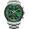 Швейцарские наручные часы Jacques Philippe JPQGC6913X6 сочетают в себе современный дизайн, надежность и функциональность, это стильные швейцарские часы с функцией хронографаХронографФункция позволяет измерять отрезки времени с особой точностью: часы, минуты, секунды. Верным признаком хронографа является наличие на циферблате 3 дополнительных окошек-счётчиков. и секундомераСекундомерСекундоме́р — прибор, способный измерять интервалы времени с точностью до долей секунды.. Корпус круглой формы диаметром 42 мм выполнен из прочной нержавеющей стали, а безельБезельВнешний ободок, закрепляющий стекло. В спортивных часах так называется поворотное кольцо с делениями на циферблате, выполняет роль таймера – замеряет отрезки времени на шкале. Неподвижный безель – элемент декора. Однонаправленно вращающийся безель на дайверских часах позволяет фиксировать моменты погружения и выныривания на поверхность. с элегантным зеленым IP-покрытиемIP-покрытиеМетод ионного напыления. Демонстрирует повышенную устойчивость к истиранию, окислению и химическим веществам. Под воздействием высокого давления и температуры около 1500°C молекулы металла надёжно соединяются с частицами корпуса часов.. Сапфировое стеклоСапфировое стеклоПрочный и надёжный материал из кристалла сапфира синтетического происхождения, характеризующийся особой твёрдостью и устойчивостью к царапинам и повреждениям. с антибликовым покрытиемАнтибликовое покрытиеСлой оксида металла в 0,13-0,3 микрон, благодаря которому стекло часов не бликует и не отражает свет. Антибликовое покрытие уменьшает отражение света в 10 раз, обеспечивая отличную читаемость показателей циферблата. надежно защищает зеленый циферблат от царапин и повреждений. Модель оснащена точным кварцевым механизмом, а также дополнительными функциями — тахиметромТахиметрРазмеченная шкала, располагается на ободке или безеле часов. Тахиметр позволяет рассчитать скорость на определённом участке пути, расстояние измеряется в километрах или милях. и индикатором даты, что делает часы не только стильным аксессуаром, но и практичным помощником на каждый день. Серебряный браслет шириной 22 мм удобно фиксируется на запястье с помощью застежки «бабочка»Застёжка "бабочка"Такой вид застёжки дополняется предохранителями, помогающими избежать случайного раскрытия браслета. Обладают изящным исполнением. . Стрелки имеют люминесцентное покрытиеЛюминесцентное покрытиеПозволяет считывать показания времени в темноте. Производители наносят на стрелки, часовые индексы, безель или поверхность циферблата светонакопительный состав, дающий холодное свечение. для удобства чтения времени в темноте. Водозащита 5 АТМ позволяет не снимать часы при дожде и случайных контактах с водой.