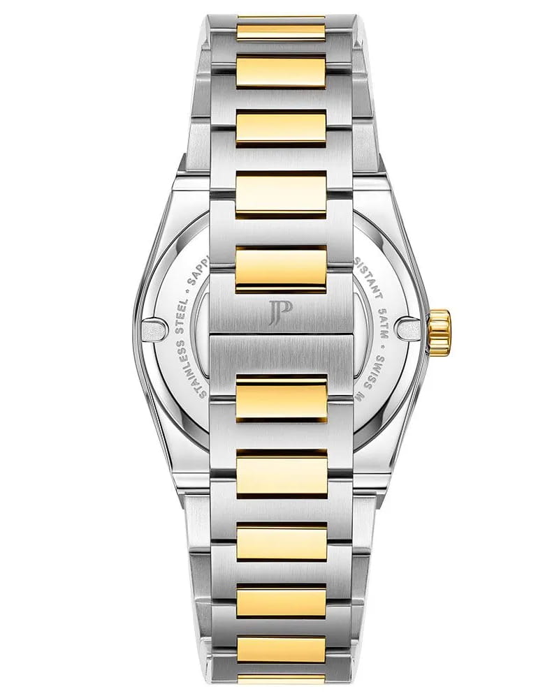 Часы Jacques Philippe JPQGLS5873X8 из коллекции Borealis — элегантные женские часы, сочетающие в себе швейцарское качество и современный дизайн. Корпус диаметром 34 мм выполнен из нержавеющей стали с PVD-покрытиемPVDУльтратонкое покрытие наносится в технике вакуумного напыления, сочетает в себе нитрид титана особой прочности со слоем золота или оксида хрома. Несёт в себе декоративную или защитную функцию., а белый циферблат защищён сапфировым стекломСапфировое стеклоПрочный и надёжный материал из кристалла сапфира синтетического происхождения, характеризующийся особой твёрдостью и устойчивостью к царапинам и повреждениям.. Внутри установлен швейцарский кварцевый механизм, обеспечивающий высокую точность хода. Водозащита 50 метров (5 ATM) защищает часы от брызг и дождя. Браслет из нержавеющей стали с PVD-покрытиемPVDУльтратонкое покрытие наносится в технике вакуумного напыления, сочетает в себе нитрид титана особой прочности со слоем золота или оксида хрома. Несёт в себе декоративную или защитную функцию. и застёжкой бабочкаЗастёжка "бабочка"Такой вид застёжки дополняется предохранителями, помогающими избежать случайного раскрытия браслета. Обладают изящным исполнением. обеспечивает комфортное ношение и надёжную фиксацию на запястье. Эти часы подойдут для тех, кто ценит сочетание элегантного дизайна и функциональности.