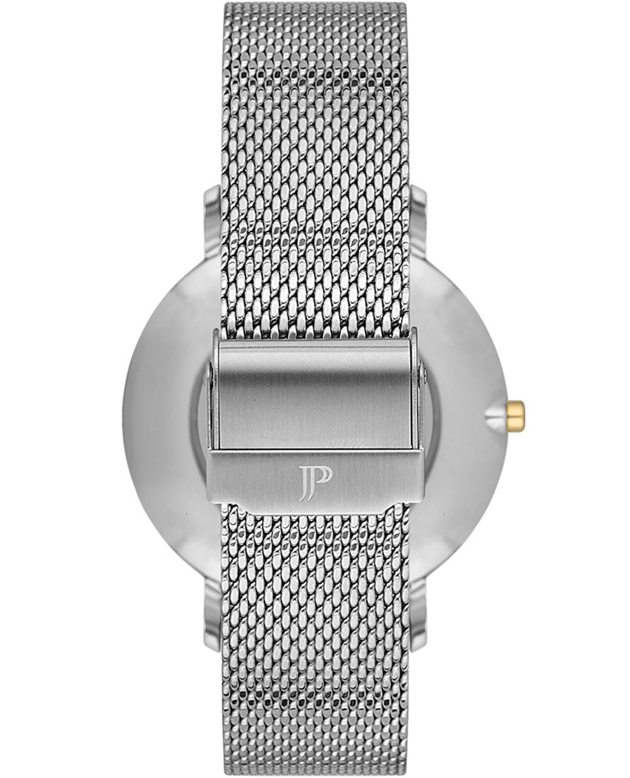 Швейцарские мужские часы Jacques Philippe Base JPQGS077226YG, кварцевый механизм с высокой точностью. Сапфировое стеклоСапфировое стеклоПрочный и надёжный материал из кристалла сапфира синтетического происхождения, характеризующийся особой твёрдостью и устойчивостью к царапинам и повреждениям. устойчивое к появлению царапин, обладающее высокой прозрачностью. Корпус часов изготовлен из нержавеющей стали. Класс водозащиты: 30 метров, позволит защитить корпус от случайных брызг или капель дождя. Стальной браслет на раскладном замкеРаскладной замокДанный вариант застежки используется только на часах с металлическим браслетом. Отличительная особенность такого крепления в том, что длина браслета становится универсальной и вы можете самостоятельно отрегулировать нужный вам размер – застежка просто двигается по браслету часов.. БезельБезельВнешний ободок, закрепляющий стекло. В спортивных часах так называется поворотное кольцо с делениями на циферблате, выполняет роль таймера – замеряет отрезки времени на шкале. Неподвижный безель – элемент декора. Однонаправленно вращающийся безель на дайверских часах позволяет фиксировать моменты погружения и выныривания на поверхность. с PVD-покрытиемPVDУльтратонкое покрытие наносится в технике вакуумного напыления, сочетает в себе нитрид титана особой прочности со слоем золота или оксида хрома. Несёт в себе декоративную или защитную функцию..