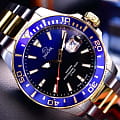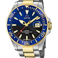 Мужские швейцарские часы Jaguar Executive Diver J863/3. Кварцевый швейцарский калибр Ronda 6003D. Сапфировое стеклоСапфировое стеклоПрочный и надёжный материал из кристалла сапфира синтетического происхождения, характеризующийся особой твёрдостью и устойчивостью к царапинам и повреждениям. устойчивое к мелким механическим повреждениям. Корпус и браслет часов изготовлены из нержавеющей стали. Стрелки и метки с люминесцентным покрытиемЛюминесцентное покрытиеПозволяет считывать показания времени в темноте. Производители наносят на стрелки, часовые индексы, безель или поверхность циферблата светонакопительный состав, дающий холодное свечение.. Окошко даты находится в положении 3 часа. Класс водозащиты: 200 метров, позволит плавать, нырять и заниматься другими водными видами спорта. Стальной браслет с частичным  PVD-покрытиемPVDУльтратонкое покрытие наносится в технике вакуумного напыления, сочетает в себе нитрид титана особой прочности со слоем золота или оксида хрома. Несёт в себе декоративную или защитную функцию. на раскладной застёжкеРаскладная застёжкаТакой тип застёжки используется только на браслетах из металла. Она никогда не раскрывается полностью, происходит разделение на 2 и более частей. Раскладывающая застёжка снизит вероятность потери часов к минимуму.. БезельБезельВнешний ободок, закрепляющий стекло. В спортивных часах так называется поворотное кольцо с делениями на циферблате, выполняет роль таймера – замеряет отрезки времени на шкале. Неподвижный безель – элемент декора. Однонаправленно вращающийся безель на дайверских часах позволяет фиксировать моменты погружения и выныривания на поверхность. с PVD-покрытиемPVDУльтратонкое покрытие наносится в технике вакуумного напыления, сочетает в себе нитрид титана особой прочности со слоем золота или оксида хрома. Несёт в себе декоративную или защитную функцию..