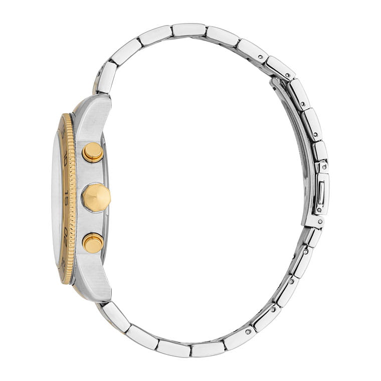 JUST CAVALLI JC1G243M0275 — стильные итальянские часы с функцией хронографаХронографФункция позволяет измерять отрезки времени с особой точностью: часы, минуты, секунды. Верным признаком хронографа является наличие на циферблате 3 дополнительных окошек-счётчиков. и секундомераСекундомерСекундоме́р — прибор, способный измерять интервалы времени с точностью до долей секунды., которые сочетают в себе элегантность и современный функционал. Круглый корпус диаметром 42 мм выполнен из нержавеющей стали, толщина корпуса составляет 11 мм, а на безельБезельВнешний ободок, закрепляющий стекло. В спортивных часах так называется поворотное кольцо с делениями на циферблате, выполняет роль таймера – замеряет отрезки времени на шкале. Неподвижный безель – элемент декора. Однонаправленно вращающийся безель на дайверских часах позволяет фиксировать моменты погружения и выныривания на поверхность. нанесено PVD-покрытиеPVDУльтратонкое покрытие наносится в технике вакуумного напыления, сочетает в себе нитрид титана особой прочности со слоем золота или оксида хрома. Несёт в себе декоративную или защитную функцию., что придает модели выразительный внешний вид и надежную защиту от внешних воздействий. Часы оснащены кварцевым механизмом, также обладают функцией отображения даты, что делает их удобными для ежедневного использования. Минеральное стеклоМинеральное стеклоМинеральное стекло представляет собой искусственно выращенный минерал кварца. Такое стекло отличается особой устойчивостью к повреждениям и царапинам. Уступает по некоторым качествам сапфировому стеклу. защищает часы от царапин, а водозащита 100 метров позволяет не снимать их во время плавания и занятий спортом. Стальной браслет с частичным PVD-покрытиемPVDУльтратонкое покрытие наносится в технике вакуумного напыления, сочетает в себе нитрид титана особой прочности со слоем золота или оксида хрома. Несёт в себе декоративную или защитную функцию. на раскладной застёжкеРаскладная застёжкаТакой тип застёжки используется только на браслетах из металла. Она никогда не раскрывается полностью, происходит разделение на 2 и более частей. Раскладывающая застёжка снизит вероятность потери часов к минимуму. обеспечивает комфортное ношение. Стрелки и метки с люминесцентным покрытиемЛюминесцентное покрытиеПозволяет считывать показания времени в темноте. Производители наносят на стрелки, часовые индексы, безель или поверхность циферблата светонакопительный состав, дающий холодное свечение. обеспечивают отличную читаемость в любое время суток.