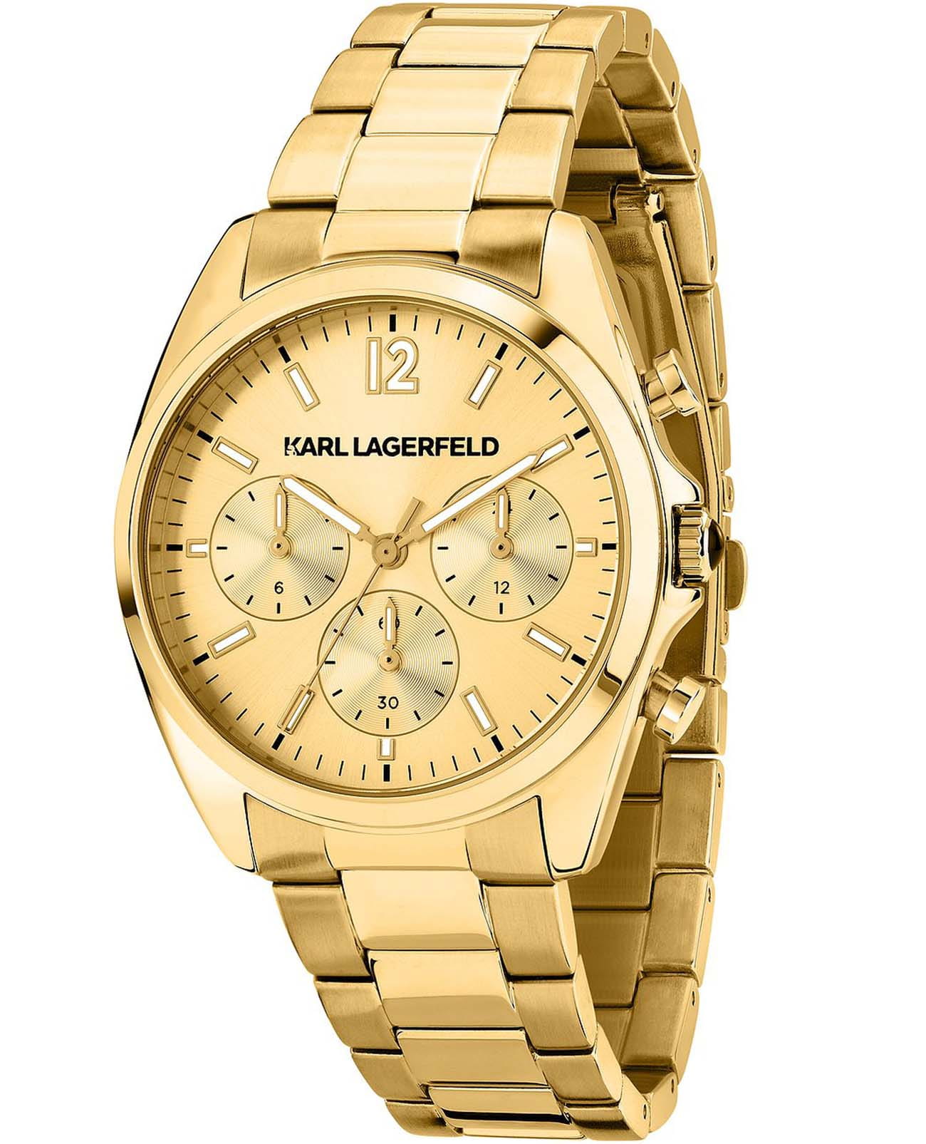 Женские элегантные часы Karl Lagerfeld Round Essentials R0553101502, кварцевый механизм с высокой точностью. Минеральное стеклоМинеральное стеклоМинеральное стекло представляет собой искусственно выращенный минерал кварца. Такое стекло отличается особой устойчивостью к повреждениям и царапинам. Уступает по некоторым качествам сапфировому стеклу. устойчивое к появлению царапин, обладающее высокой прозрачностью. Изысканный корпус изготовлен из нержавеющей стали с IP-покрытиемIP-покрытиеМетод ионного напыления. Демонстрирует повышенную устойчивость к истиранию, окислению и химическим веществам. Под воздействием высокого давления и температуры около 1500°C молекулы металла надёжно соединяются с частицами корпуса часов.. Лаконичные центральные часовая, минутная и секундная стрелки. Водонепроницаемость 5 АТМ позволяет использовать часы в повседневных условиях — при мытье рук или под лёгким дождём. Стальной браслет c раскладной застёжкойРаскладная застёжкаТакой тип застёжки используется только на браслетах из металла. Она никогда не раскрывается полностью, происходит разделение на 2 и более частей. Раскладывающая застёжка снизит вероятность потери часов к минимуму. с IP-покрытиемIP-покрытиеМетод ионного напыления. Демонстрирует повышенную устойчивость к истиранию, окислению и химическим веществам. Под воздействием высокого давления и температуры около 1500°C молекулы металла надёжно соединяются с частицами корпуса часов., обеспечивающей комфорт и уверенную фиксацию на запястье, а также добавляя завершающий штрих к этому стильному аксессуару. Стрелки и метки оснащены люминесцентным покрытиемЛюминесцентное покрытиеПозволяет считывать показания времени в темноте. Производители наносят на стрелки, часовые индексы, безель или поверхность циферблата светонакопительный состав, дающий холодное свечение., обеспечивающим хорошую читаемость в темноте. Циферблат подчёркивают изысканный характер часов, создавая универсальный образ, подходящий как для повседневных ситуаций, так и для особых случаев. В часах есть функция хронографаХронографФункция позволяет измерять отрезки времени с особой точностью: часы, минуты, секунды. Верным признаком хронографа является наличие на циферблате 3 дополнительных окошек-счётчиков., с помощью которой вы сможете измерять время с высокой точностью.