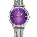 Женские наручные часы Космос Созвездие K 601.10.37 — это сочетание традиций часового искусства 60-70-х годов и футуристического дизайна, вдохновленного космическими исследованиями. Они не только служат напоминанием о прошлом, но и побуждают задуматься о будущем, позволяя наслаждаться качеством и смыслом, вложенными в каждую деталь. Полированный корпус часов выполнен в виде силуэта летающей тарелки благодаря выпуклым формам стекла и нижней части корпуса. Стальные ушки, которые напоминают опоры летающей тарелки, завершает общий образ. На задней крышке часов выгравирован фантазийный сюжет – космическая станция будущего. Название коллекции Созвездие – идеально отражает разнообразие моделей с яркими, но тщательно подобранными цветами. Фиолетовый циферблат выполнен в ретро стиле, с выгнутыми краями, что требует применения сложной производственной технологии. Такой дизайн был характерен для часов прошлых лет. Кончик секундной стрелки также изогнут, следуя форме циферблата. Выпуклый градиентный циферблат украшен шлифовкой в стиле солнечных лучей и ручными индексами, которые фиксируются на двух штифтах. Окошко даты обрамлено стальной рамкой, что добавляет часам утонченности и элегантности. Часовая и минутная стрелки, а также круг по краю циферблата, напоминающий ореол Земли, с люминесцентным покрытиемЛюминесцентное покрытиеПозволяет считывать показания времени в темноте. Производители наносят на стрелки, часовые индексы, безель или поверхность циферблата светонакопительный состав, дающий холодное свечение., которое светится в темноте, создавая завораживающий эффект. Форма минерального стеклаМинеральное стеклоМинеральное стекло представляет собой искусственно выращенный минерал кварца. Такое стекло отличается особой устойчивостью к повреждениям и царапинам. Уступает по некоторым качествам сапфировому стеклу. тщательно продумана: оно выгнуто как снаружи, так и изнутри. Такая конструкция исключает искажения изображения на циферблате, в отличие от обычного стекла. Часы оснащены гибким и прочным браслетом из миланского плетения. Заводная головка, застежка и ремешок украшены фирменным логотипом.