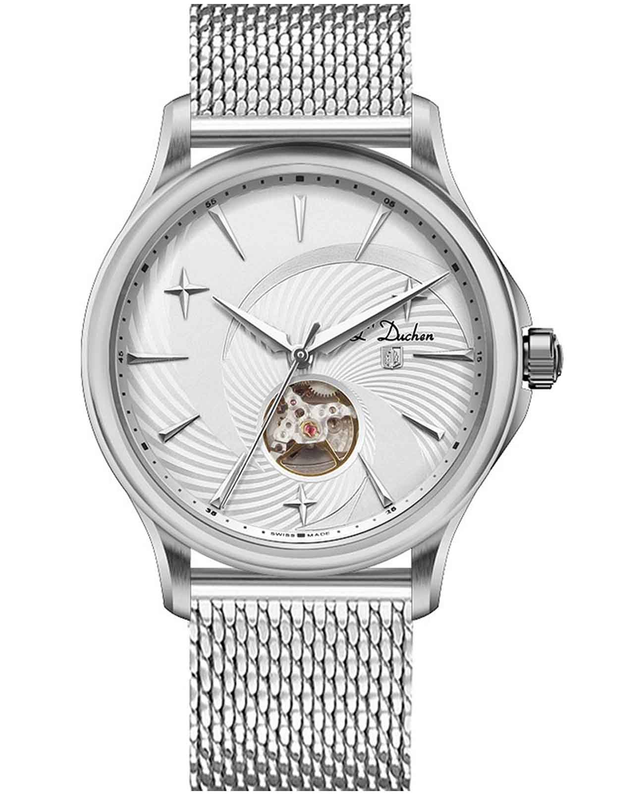 Мужские механические швейцарские часы с автоподзаводом LDuchen Supernova D 154.11.33 M, кварцевый механизм с высокой точностью. Сапфировое стеклоСапфировое стеклоПрочный и надёжный материал из кристалла сапфира синтетического происхождения, характеризующийся особой твёрдостью и устойчивостью к царапинам и повреждениям. устойчивое к появлению царапин, обладающее высокой прозрачностью. Корпус часов выполнен из нержавеющей стали. Класс водозащиты: 50 метров, позволит защитить корпус от случайных брызг или капель дождя. Стальной браслет миланского плетения на раскладном замкеРаскладной замокДанный вариант застежки используется только на часах с металлическим браслетом. Отличительная особенность такого крепления в том, что длина браслета становится универсальной и вы можете самостоятельно отрегулировать нужный вам размер – застежка просто двигается по браслету часов..