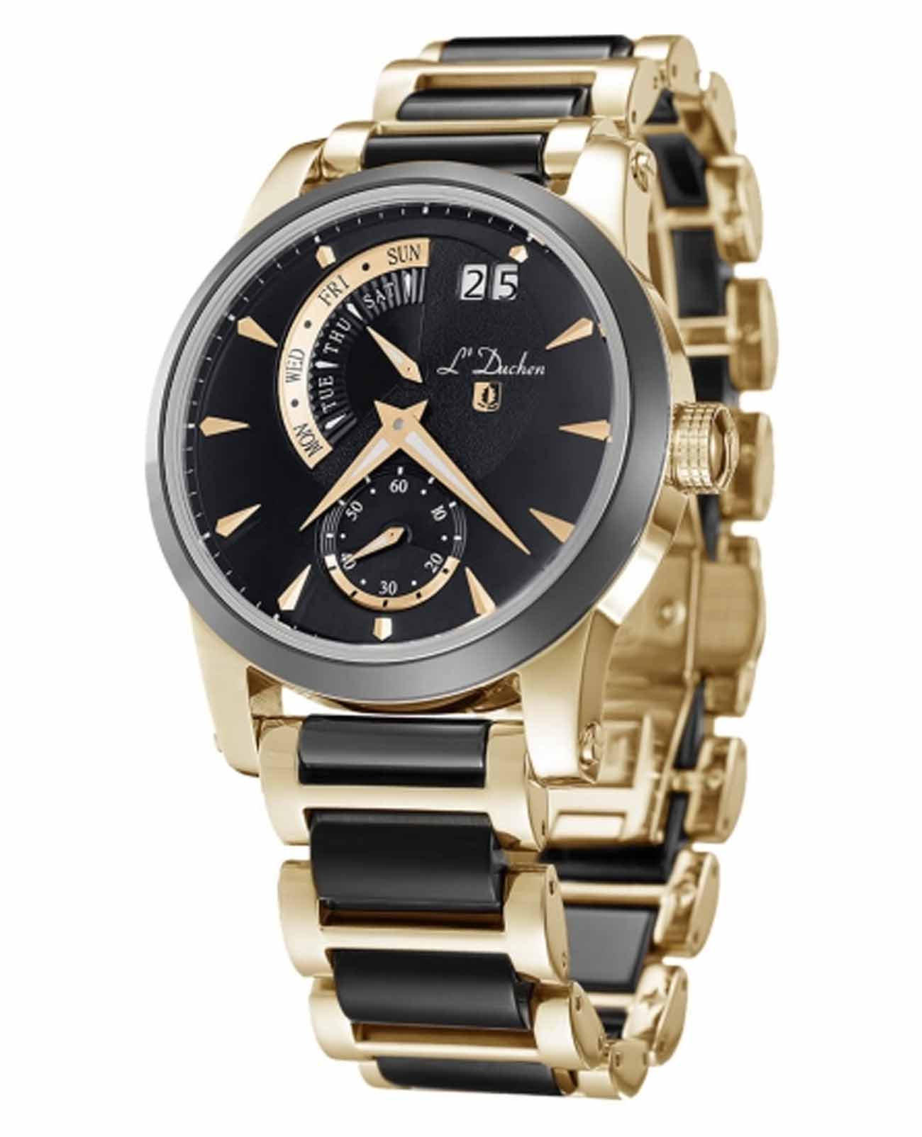 Мужские швейцарские часы L'Duchen Aerostat D 237.20.31, кварцевый механизм с высокой точностью. Сапфировое стеклоСапфировое стеклоПрочный и надёжный материал из кристалла сапфира синтетического происхождения, характеризующийся особой твёрдостью и устойчивостью к царапинам и повреждениям. устойчивое к появлению царапин, обладающее высокой прозрачностью. Корпус часов выполнен из нержавеющей стали с PVD-покрытиемPVDУльтратонкое покрытие наносится в технике вакуумного напыления, сочетает в себе нитрид титана особой прочности со слоем золота или оксида хрома. Несёт в себе декоративную или защитную функцию.. БезельБезельВнешний ободок, закрепляющий стекло. В спортивных часах так называется поворотное кольцо с делениями на циферблате, выполняет роль таймера – замеряет отрезки времени на шкале. Неподвижный безель – элемент декора. Однонаправленно вращающийся безель на дайверских часах позволяет фиксировать моменты погружения и выныривания на поверхность. из керамики. Стрелки с люминесцентным покрытиемЛюминесцентное покрытиеПозволяет считывать показания времени в темноте. Производители наносят на стрелки, часовые индексы, безель или поверхность циферблата светонакопительный состав, дающий холодное свечение.. Класс водозащиты: 100 метров, позволит плавать, нырять и заниматься другими водными видами спорта. Стальной браслет с PVD-покрытиемPVDУльтратонкое покрытие наносится в технике вакуумного напыления, сочетает в себе нитрид титана особой прочности со слоем золота или оксида хрома. Несёт в себе декоративную или защитную функцию. и керамическими вставками на застёжке «бабочка» с кнопкамиЗастёжка "бабочка"Такой вид застёжки дополняется предохранителями, помогающими избежать случайного раскрытия браслета. Обладают изящным исполнением. .