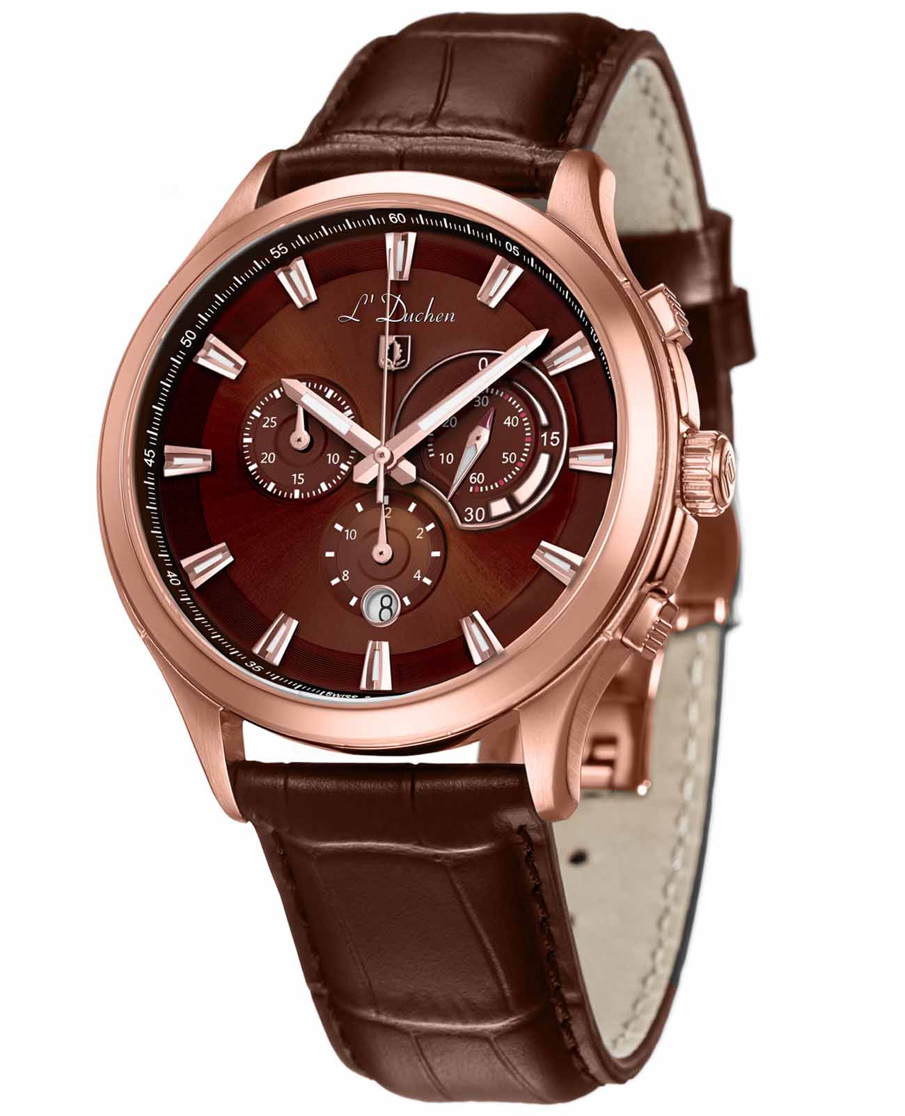 Мужские швейцарские часы- хронографХронографФункция позволяет измерять отрезки времени с особой точностью: часы, минуты, секунды. Верным признаком хронографа является наличие на циферблате 3 дополнительных окошек-счётчиков. L'Duchen Pilotage D 742.41.43, кварцевый механизм с высокой точностью. Сапфировое стеклоСапфировое стеклоПрочный и надёжный материал из кристалла сапфира синтетического происхождения, характеризующийся особой твёрдостью и устойчивостью к царапинам и повреждениям. устойчивое к появлению царапин, обладающее высокой прозрачностью. Корпус часов выполнен из нержавеющей стали с PVD-покрытиемPVDУльтратонкое покрытие наносится в технике вакуумного напыления, сочетает в себе нитрид титана особой прочности со слоем золота или оксида хрома. Несёт в себе декоративную или защитную функцию.. Стрелки с люминесцентным покрытиемЛюминесцентное покрытиеПозволяет считывать показания времени в темноте. Производители наносят на стрелки, часовые индексы, безель или поверхность циферблата светонакопительный состав, дающий холодное свечение.. Класс водозащиты: 100 метров, позволит плавать, нырять и заниматься другими водными видами спорта. Кожаный ремешок на застёжке «бабочка» с кнопкамиЗастёжка "бабочка"Такой вид застёжки дополняется предохранителями, помогающими избежать случайного раскрытия браслета. Обладают изящным исполнением. .