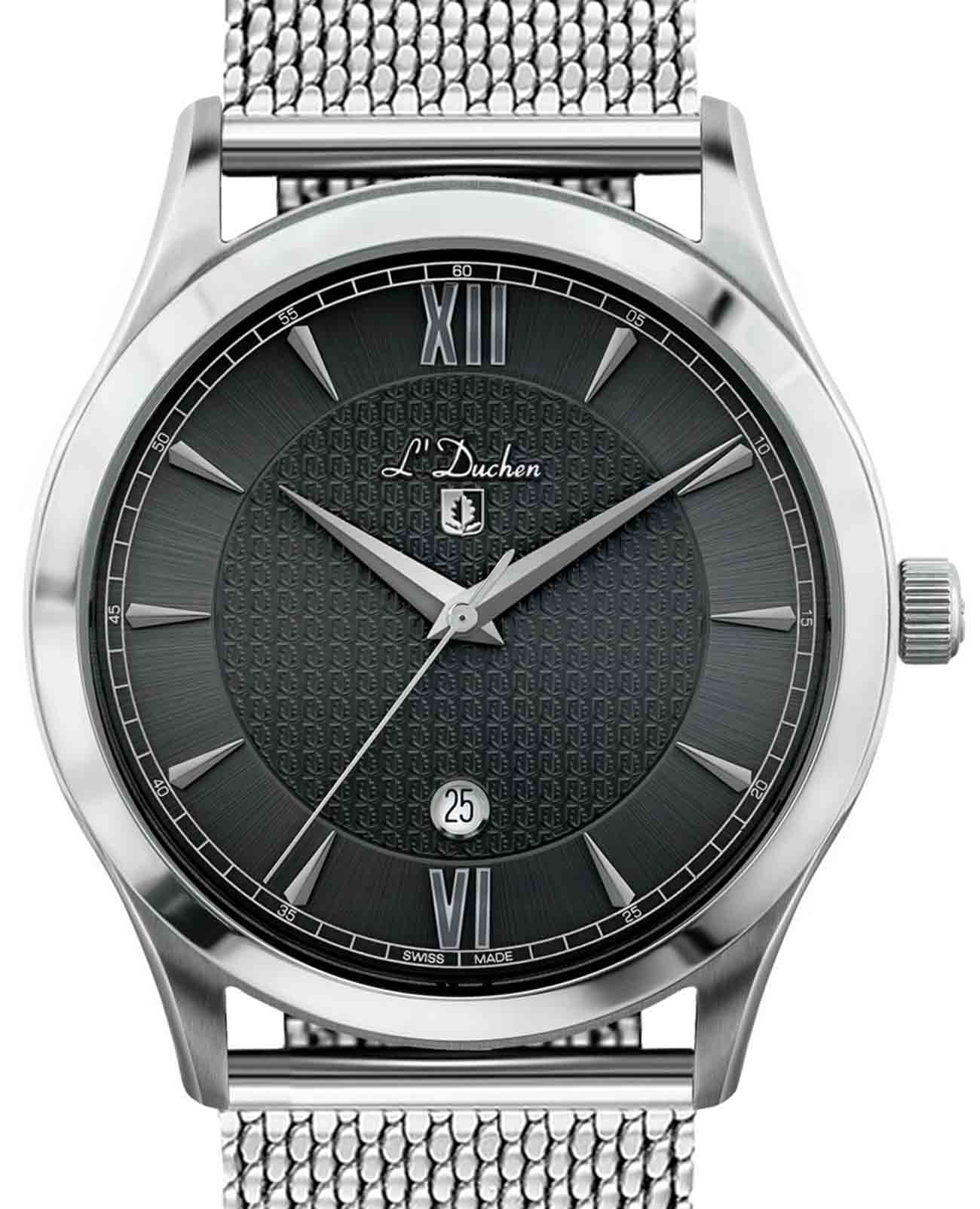 Мужские швейцарские часы L'Duchen Carcassonne D 761.19.11, кварцевый механизм с высокой точностью. Сапфировое стеклоСапфировое стеклоПрочный и надёжный материал из кристалла сапфира синтетического происхождения, характеризующийся особой твёрдостью и устойчивостью к царапинам и повреждениям. устойчивое к появлению царапин, обладающее высокой прозрачностью. Корпус часов выполнен из нержавеющей стали. Класс водозащиты: 50 метров, позволит защитить корпус от случайных брызг или капель дождя. Стальной браслет миланского плетения на раскладном замкеРаскладной замокДанный вариант застежки используется только на часах с металлическим браслетом. Отличительная особенность такого крепления в том, что длина браслета становится универсальной и вы можете самостоятельно отрегулировать нужный вам размер – застежка просто двигается по браслету часов..