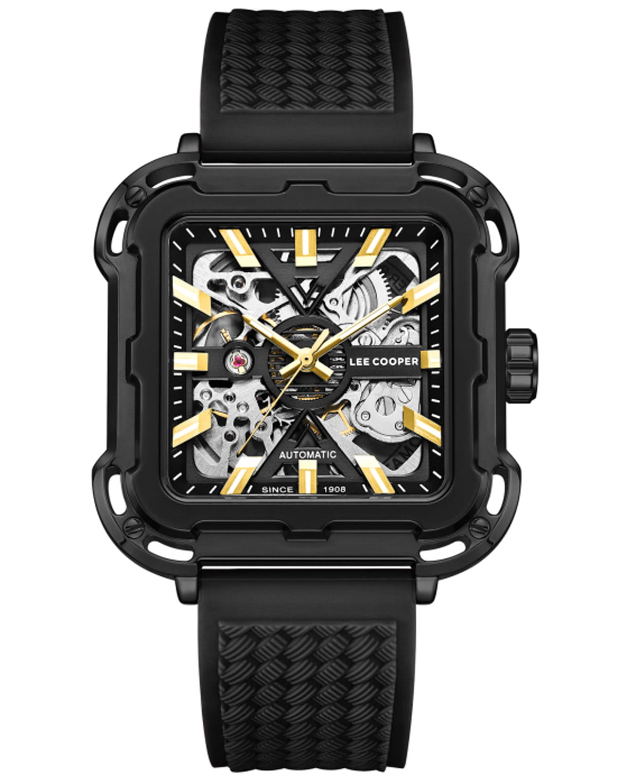 Мужские наручные часы Lee Cooper LC08072.666 из коллекции Classic оснащены автоматическим механизмом калибра G3265ZH, который заряжается от движения руки и обеспечивает надежность и точность хода. Корпус часов выполнен из металла с черным PVDPVDУльтратонкое покрытие наносится в технике вакуумного напыления, сочетает в себе нитрид титана особой прочности со слоем золота или оксида хрома. Несёт в себе декоративную или защитную функцию. покрытием, что придает модели современный и стильный вид. Циферблат имеет уникальный скелетонизированный дизайн, позволяющий наблюдать за работой механизма, что делает часы не только функциональными, но и визуально привлекательными. Для защиты циферблата используется минеральное стеклоМинеральное стеклоМинеральное стекло представляет собой искусственно выращенный минерал кварца. Такое стекло отличается особой устойчивостью к повреждениям и царапинам. Уступает по некоторым качествам сапфировому стеклу., устойчивое к царапинам и механическим повреждениям. Корпус имеет размеры 44 x 49 мм. Ремешок изготовлен из каучука чёрного цвета и гармонично дополняет общий дизайн модели. Стандартная застежка. Часы обладают водонепроницаемостью до 50 метров (5 АТМ), что позволяет использовать их в повседневной жизни, включая контакт с водой при мытье рук или дожде. Эти часы станут идеальным выбором для мужчин, ценящих стиль, качество и функциональность.