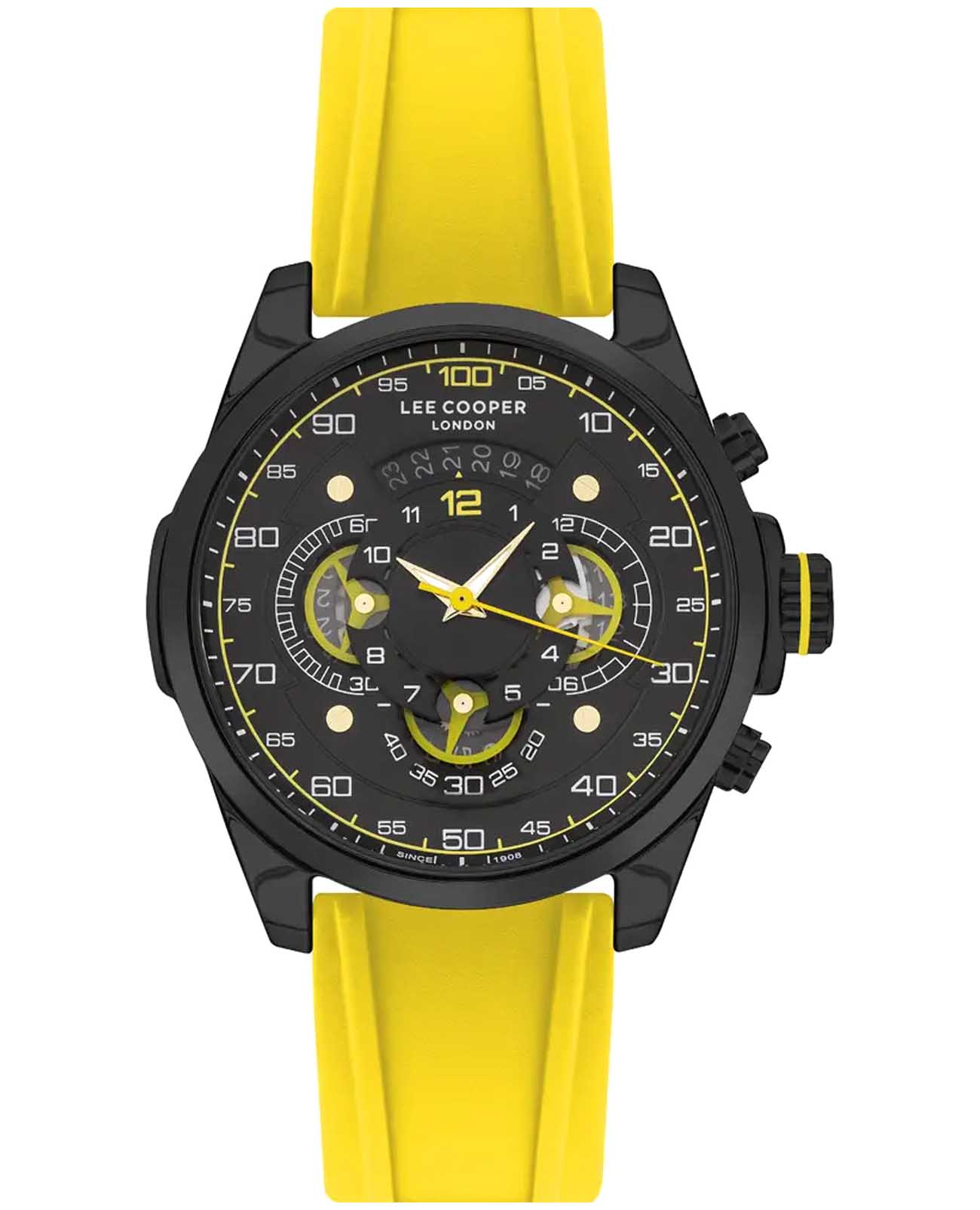 Lee Cooper LC07432.657 — элегантная модель с функциональными возможностями для повседневного использования. Круглый корпус из нержавеющей стали диаметром 48 мм с IP-покрытиемIP-покрытиеМетод ионного напыления. Демонстрирует повышенную устойчивость к истиранию, окислению и химическим веществам. Под воздействием высокого давления и температуры около 1500°C молекулы металла надёжно соединяются с частицами корпуса часов. придаёт часам классический и современный вид. Циферблат защищён минеральным стекломМинеральное стеклоМинеральное стекло представляет собой искусственно выращенный минерал кварца. Такое стекло отличается особой устойчивостью к повреждениям и царапинам. Уступает по некоторым качествам сапфировому стеклу., устойчивым к царапинам, хорошо может выдержать небольшие удары и падения. Часы работают на кварцевом механизме, обеспечивающем точность хода. Каучуковый ремешок желтого цвета на стандартной застёжке гарантирует удобную посадку и надёжную фиксацию на запястье. Водозащита 50 метров защищает часы от брызг и дождя, делая их подходящими для повседневного использования. Стрелки и метки покрыты люминесцентным покрытиемЛюминесцентное покрытиеПозволяет считывать показания времени в темноте. Производители наносят на стрелки, часовые индексы, безель или поверхность циферблата светонакопительный состав, дающий холодное свечение., обеспечивающим отличную читаемость в темноте.