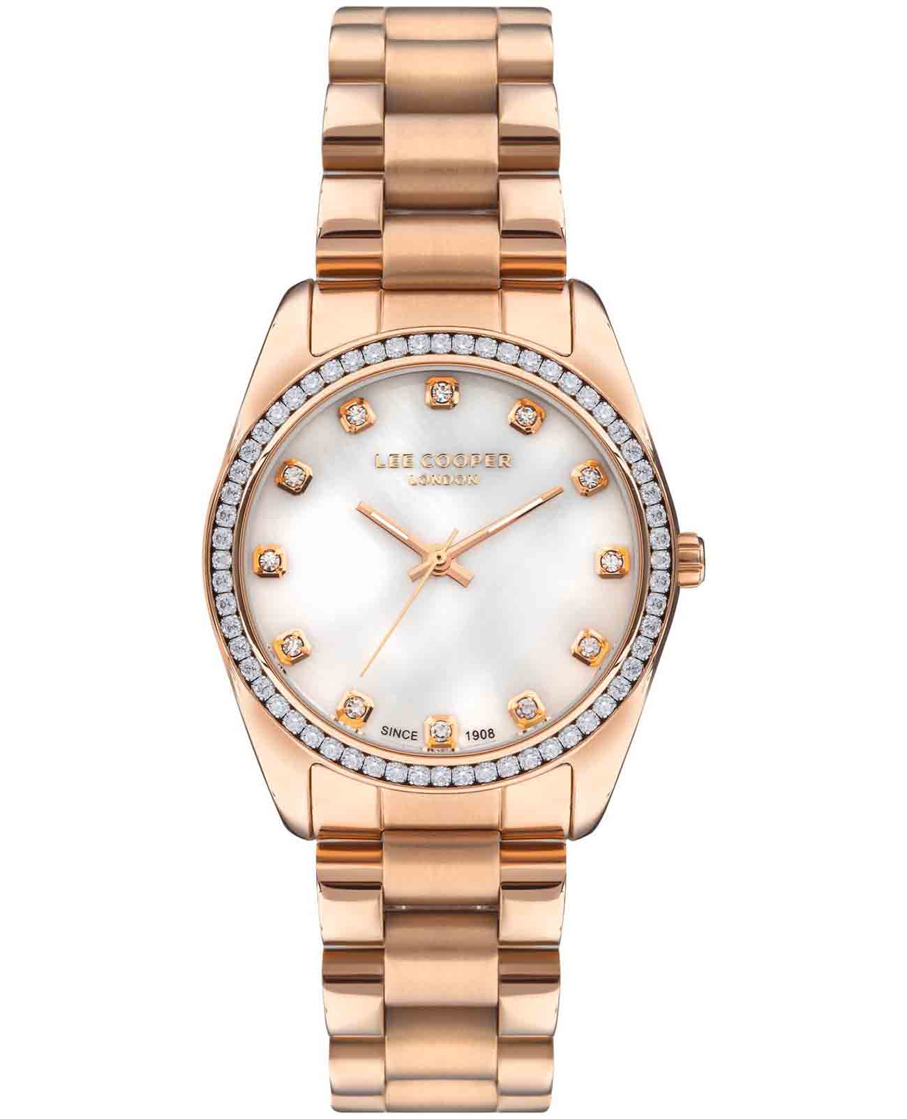 Женские наручные часы Lee Cooper LC07478.420 — это элегантная модель с утончённым дизайном. Корпус диаметром 34 мм выполнен из суперметалла с IP-покрытиемIP-покрытиеМетод ионного напыления. Демонстрирует повышенную устойчивость к истиранию, окислению и химическим веществам. Под воздействием высокого давления и температуры около 1500°C молекулы металла надёжно соединяются с частицами корпуса часов., что придаёт часам изысканный вид. Перламутровый циферблат украшен изящными стрелками и вставками из циркония в виде меток, обеспечивая удобное считывание времени. Циферблат защищён минеральным стекломМинеральное стеклоМинеральное стекло представляет собой искусственно выращенный минерал кварца. Такое стекло отличается особой устойчивостью к повреждениям и царапинам. Уступает по некоторым качествам сапфировому стеклу., устойчивым к царапинам. Часы работают на кварцевом механизме, обеспечивая точность хода. Браслет из нержавеющей стали с раскладной застёжкойРаскладная застёжкаТакой тип застёжки используется только на браслетах из металла. Она никогда не раскрывается полностью, происходит разделение на 2 и более частей. Раскладывающая застёжка снизит вероятность потери часов к минимуму. гарантирует комфортное ношение и надёжную фиксацию на запястье. Водозащита 30 метров защищает часы от случайных брызг и дождя, делая их подходящими для повседневного использования. БезельБезельВнешний ободок, закрепляющий стекло. В спортивных часах так называется поворотное кольцо с делениями на циферблате, выполняет роль таймера – замеряет отрезки времени на шкале. Неподвижный безель – элемент декора. Однонаправленно вращающийся безель на дайверских часах позволяет фиксировать моменты погружения и выныривания на поверхность. инкрустирован кристаллами. Стрелки покрыты люминесцентным покрытиемЛюминесцентное покрытиеПозволяет считывать показания времени в темноте. Производители наносят на стрелки, часовые индексы, безель или поверхность циферблата светонакопительный состав, дающий холодное свечение., обеспечивая удобное считывание показаний в условиях недостаточного освещения.