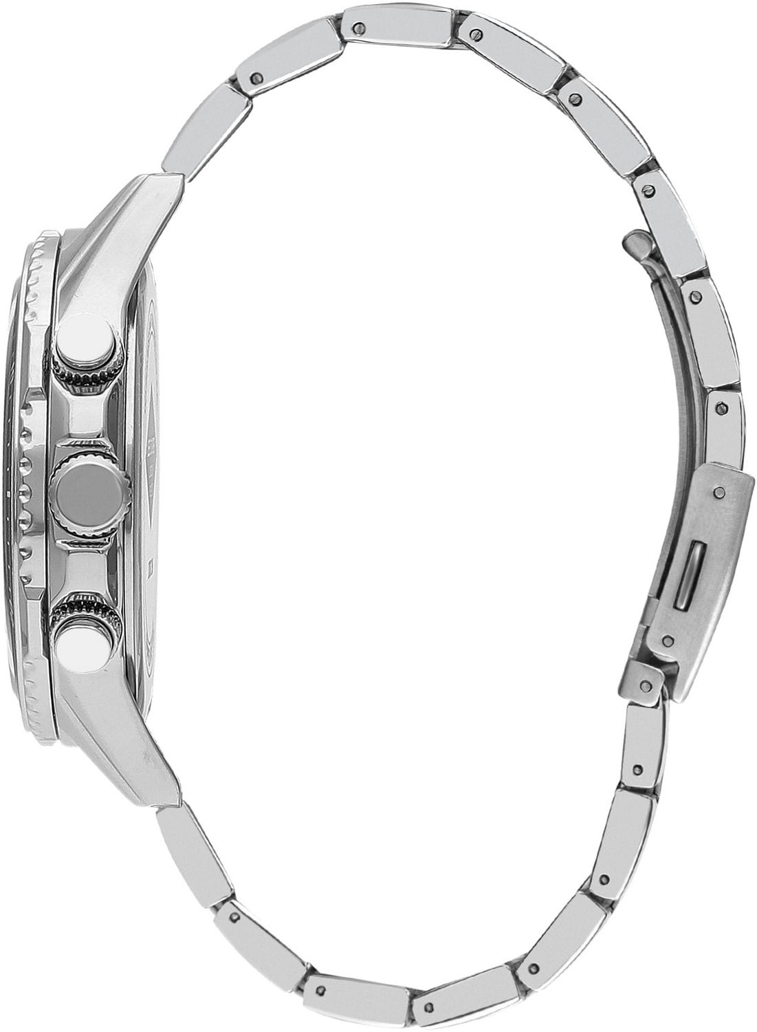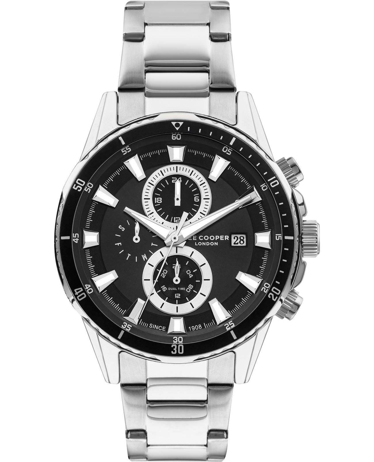 Мужские кварцевые часы Lee Cooper LC07627.350 — это мультифункциональный аксессуар с лаконичным дизайном. Корпус диаметром 46 мм выполнен из суперметалла. Безель с IP-покрытиемIP-покрытиеМетод ионного напыления. Демонстрирует повышенную устойчивость к истиранию, окислению и химическим веществам. Под воздействием высокого давления и температуры около 1500°C молекулы металла надёжно соединяются с частицами корпуса часов. в чёрном цвете. Циферблат чёрного цвета оформлен индексами и дополнен окошками даты, дня недели и 24-часового индикатора. Циферблат защищён минеральным стекломМинеральное стеклоМинеральное стекло представляет собой искусственно выращенный минерал кварца. Такое стекло отличается особой устойчивостью к повреждениям и царапинам. Уступает по некоторым качествам сапфировому стеклу.. Стрелки и метки с люминесцентным покрытиемЛюминесцентное покрытиеПозволяет считывать показания времени в темноте. Производители наносят на стрелки, часовые индексы, безель или поверхность циферблата светонакопительный состав, дающий холодное свечение., обеспечивающим хорошую читаемость в темноте. Часы оснащены стальным браслетом серебристого цвета на раскладной застёжкеРаскладная застёжкаТакой тип застёжки используется только на браслетах из металла. Она никогда не раскрывается полностью, происходит разделение на 2 и более частей. Раскладывающая застёжка снизит вероятность потери часов к минимуму.. Водонепроницаемость 50 м позволяет использовать часы для повседневного ношения. Универсальный выбор для тех, кто ценит функциональность и надёжность.