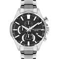 Мужские часы Lee Cooper LC07801.360 выполнены в классическом стиле и сочетают строгий дизайн с расширенным функционалом. Модель оснащена кварцевым механизмом, обеспечивающим точность хода и минимальное обслуживание. Корпус круглой формы имеет размер 46 мм, изготовлен из суперметалла. Циферблат черного цвета дополнен индексами для чёткого отсчёта времени, а также украшен серебристыми стрелками и метками с люминесцентным покрытиемЛюминесцентное покрытиеПозволяет считывать показания времени в темноте. Производители наносят на стрелки, часовые индексы, безель или поверхность циферблата светонакопительный состав, дающий холодное свечение., гармонично дополняющим общий дизайн модели. Часы оснащены функциями отображения даты, дня недели, 24-часового индикатора и второго часового поясаВторой часовой поясФункция, позволяющая отображать время двух часовых поясов одновременно., что делает их особенно удобными для повседневного использования. Защиту циферблата обеспечивает минеральное стеклоМинеральное стеклоМинеральное стекло представляет собой искусственно выращенный минерал кварца. Такое стекло отличается особой устойчивостью к повреждениям и царапинам. Уступает по некоторым качествам сапфировому стеклу., устойчивое к мелким механическим повреждениям. Браслет из стали оснащен раскладной застёжкойРаскладная застёжкаТакой тип застёжки используется только на браслетах из металла. Она никогда не раскрывается полностью, происходит разделение на 2 и более частей. Раскладывающая застёжка снизит вероятность потери часов к минимуму., обеспечивающим комфортное и безопасное ношение. Водозащита 5 АТМ позволяет использовать часы в условиях случайного контакта с водой — например, при мытье рук или под дождём. Это сочетание классического дизайна, прочности материалов и широкой функциональности для уверенных в себе мужчин.