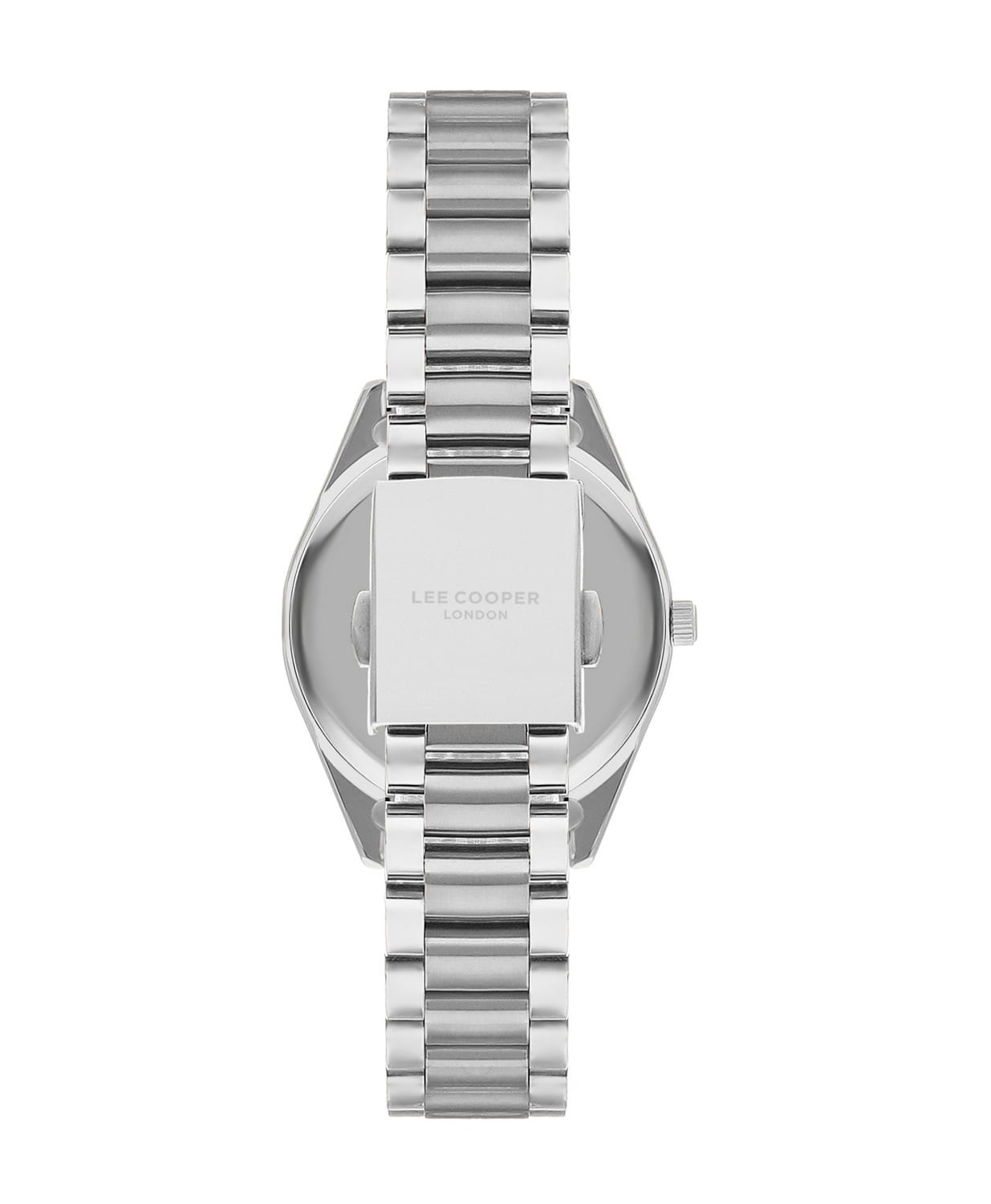 Женские часы Lee Cooper LC07827.390 выполнены в классическом стиле и сочетают строгий дизайн с надёжным механизмом. Модель оснащена кварцевым механизмом, обеспечивающим точность хода и минимальное обслуживание. Корпус круглой формы имеет размер 34 мм, изготовлен из суперметалла, гарантирует комфорт при ношении. Защиту циферблата обеспечивает минеральное стеклоМинеральное стеклоМинеральное стекло представляет собой искусственно выращенный минерал кварца. Такое стекло отличается особой устойчивостью к повреждениям и царапинам. Уступает по некоторым качествам сапфировому стеклу., устойчивое к мелким механическим повреждениям. Лаконичные стрелки и метки с люминесцентным покрытиемЛюминесцентное покрытиеПозволяет считывать показания времени в темноте. Производители наносят на стрелки, часовые индексы, безель или поверхность циферблата светонакопительный состав, дающий холодное свечение.. Изысканный стальной браслет на раскладной застёжкеРаскладная застёжкаТакой тип застёжки используется только на браслетах из металла. Она никогда не раскрывается полностью, происходит разделение на 2 и более частей. Раскладывающая застёжка снизит вероятность потери часов к минимуму. гарантирует удобную посадку и надёжную фиксацию на запястье. Окошко даты расположено в положении 3 часов. Водозащита 30WR позволяет использовать часы в повседневных условиях без риска повреждения от случайных брызг воды. Это сочетание классического дизайна, прочности материалов и качества исполнения для уверенных в себе женщин.
