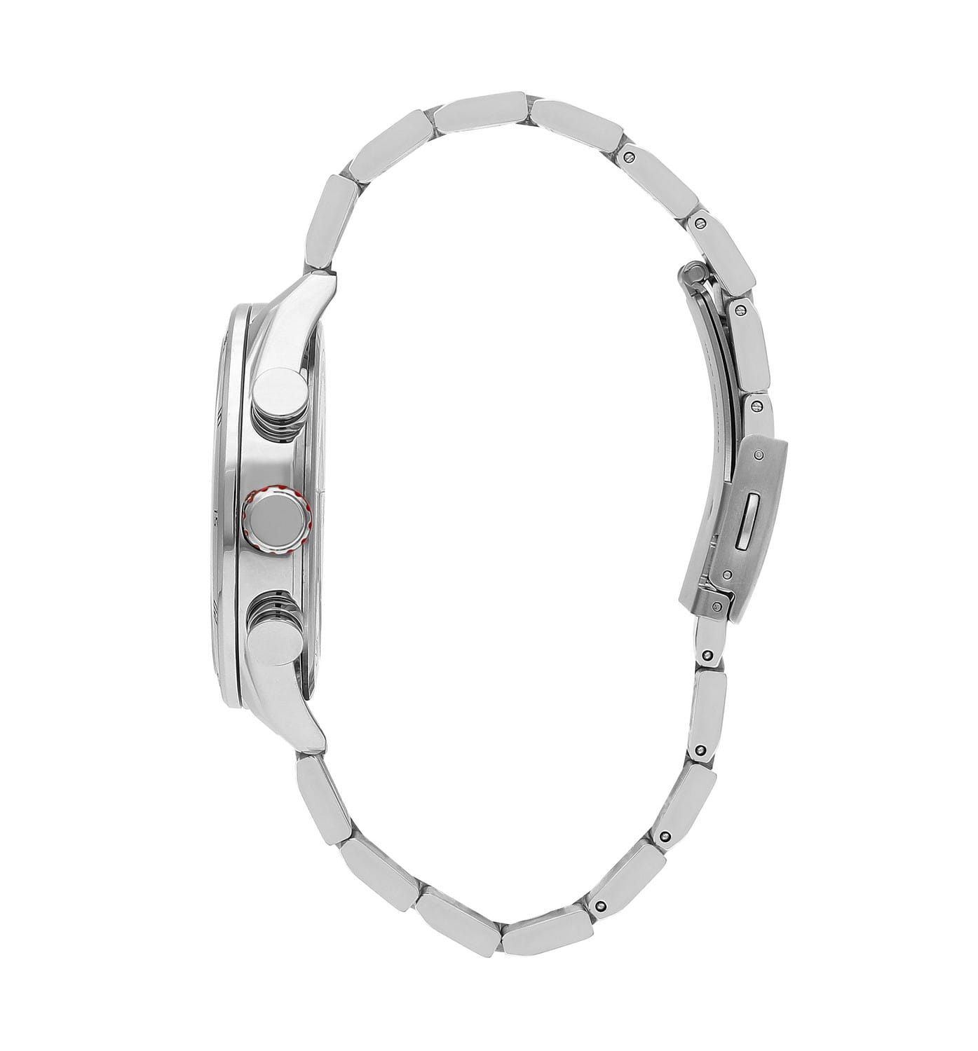 Мужские часы Lee Cooper LC07834.350 — это стильное сочетание элегантности и современного дизайна. Круглый корпус диаметром 45 мм выполнен из суперметалла, который придает модели особый изысканный вид. Циферблат защищен минеральным стекломМинеральное стеклоМинеральное стекло представляет собой искусственно выращенный минерал кварца. Такое стекло отличается особой устойчивостью к повреждениям и царапинам. Уступает по некоторым качествам сапфировому стеклу., обеспечивающим устойчивость к царапинам. Метки в виде штрихов. Часы оснащены надежным кварцевым механизмом, а стальной браслет на раскладной застёжкеРаскладная застёжкаТакой тип застёжки используется только на браслетах из металла. Она никогда не раскрывается полностью, происходит разделение на 2 и более частей. Раскладывающая застёжка снизит вероятность потери часов к минимуму. гарантирует комфортную посадку на запястье. Стрелки с люминесцентным покрытиемЛюминесцентное покрытиеПозволяет считывать показания времени в темноте. Производители наносят на стрелки, часовые индексы, безель или поверхность циферблата светонакопительный состав, дающий холодное свечение. позволяют легко считывать время даже в условиях недостаточного освещения. Мультифункциональная модель с индикацией даты, дня недели, с дополнительным 24-х часовым индикатором. Водозащита 50 метров позволит защитить корпус от случайных брызг или капель дождя. Lee Cooper  — отличный выбор для тех, кто ценит утонченность и качество.