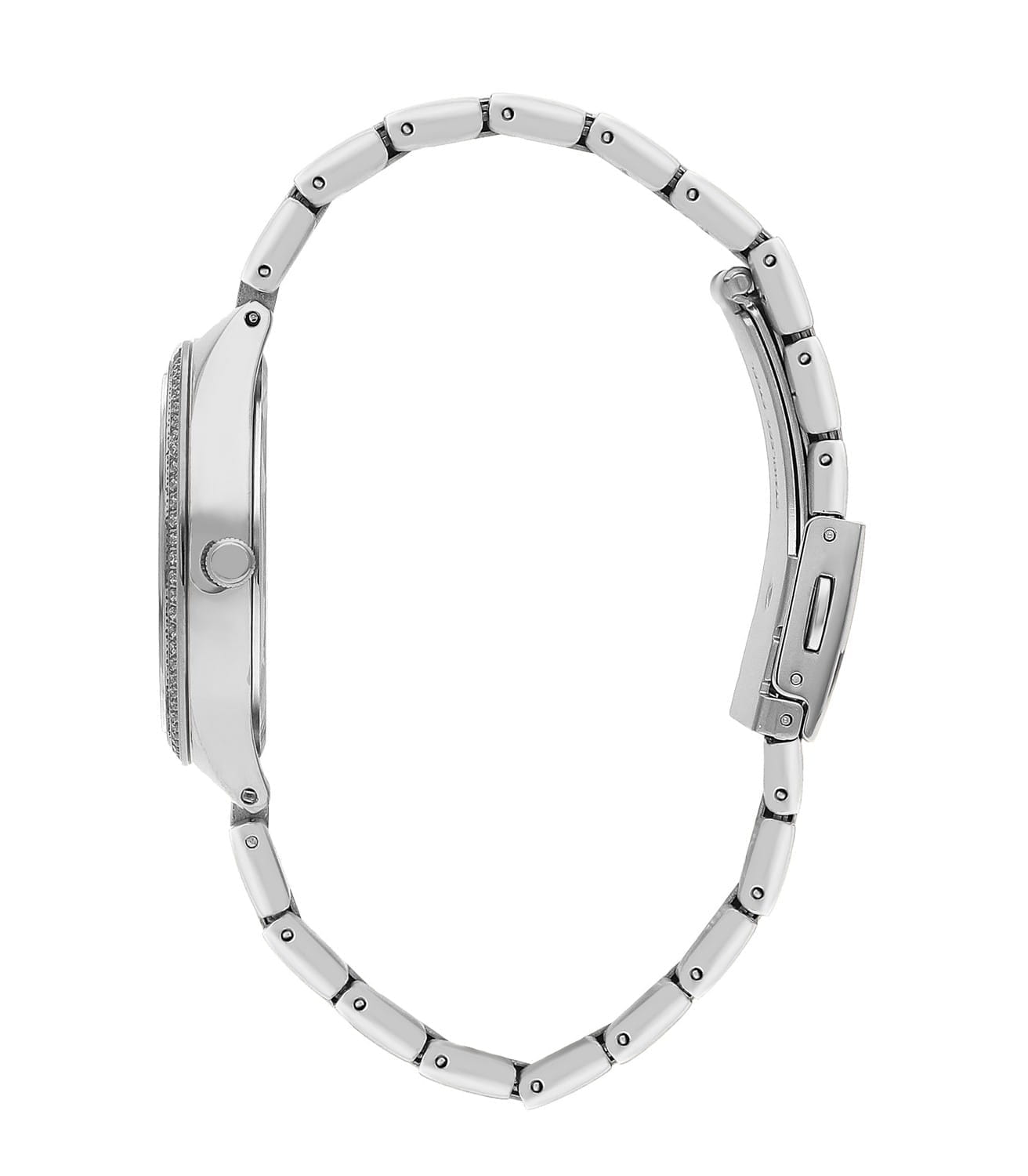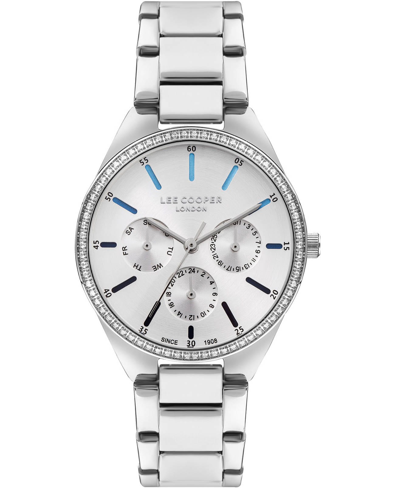 Женские часы Lee Cooper LC07863.390 — это стильное сочетание элегантности и современного дизайна. Круглый корпус диаметром 34 мм выполнен из суперметалла, а неподвижный безельБезельВнешний ободок, закрепляющий стекло. В спортивных часах так называется поворотное кольцо с делениями на циферблате, выполняет роль таймера – замеряет отрезки времени на шкале. Неподвижный безель – элемент декора. Однонаправленно вращающийся безель на дайверских часах позволяет фиксировать моменты погружения и выныривания на поверхность. украшен цирконами, придающими модели особый блеск. Серебристый циферблат защищен минеральным стекломМинеральное стеклоМинеральное стекло представляет собой искусственно выращенный минерал кварца. Такое стекло отличается особой устойчивостью к повреждениям и царапинам. Уступает по некоторым качествам сапфировому стеклу., обеспечивающим устойчивость к царапинам. Метки в виде штрихов. Часы оснащены надежным кварцевым механизмом, а металлический браслет на раскладной застёжкеРаскладная застёжкаТакой тип застёжки используется только на браслетах из металла. Она никогда не раскрывается полностью, происходит разделение на 2 и более частей. Раскладывающая застёжка снизит вероятность потери часов к минимуму. гарантирует комфортную посадку на запястье. Мультифункциональная модель с индикацией даты, дня недели, с дополнительным 24-х часовым индикатором. Водозащита 30 метров защищает модель от случайных брызг и дождя. Lee Cooper — отличный выбор для тех, кто ценит утонченность и качество.