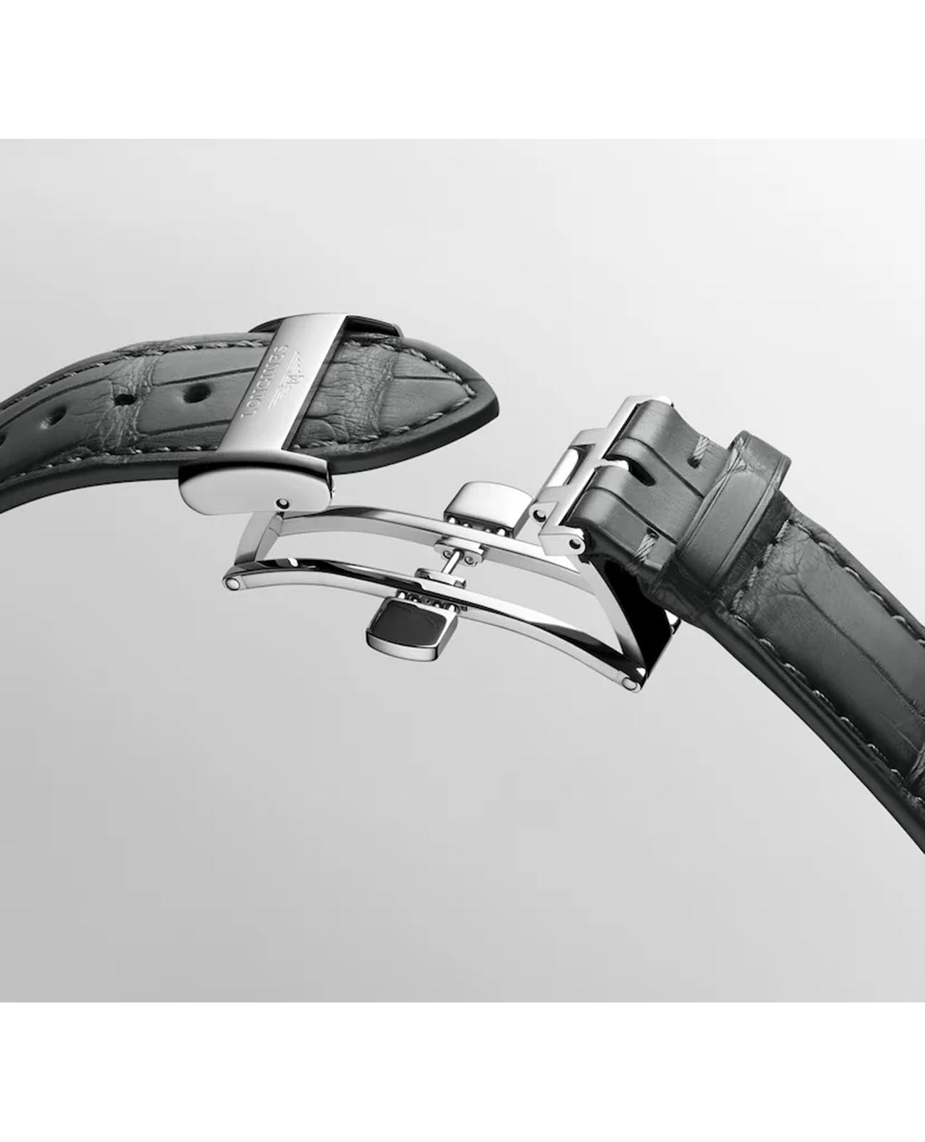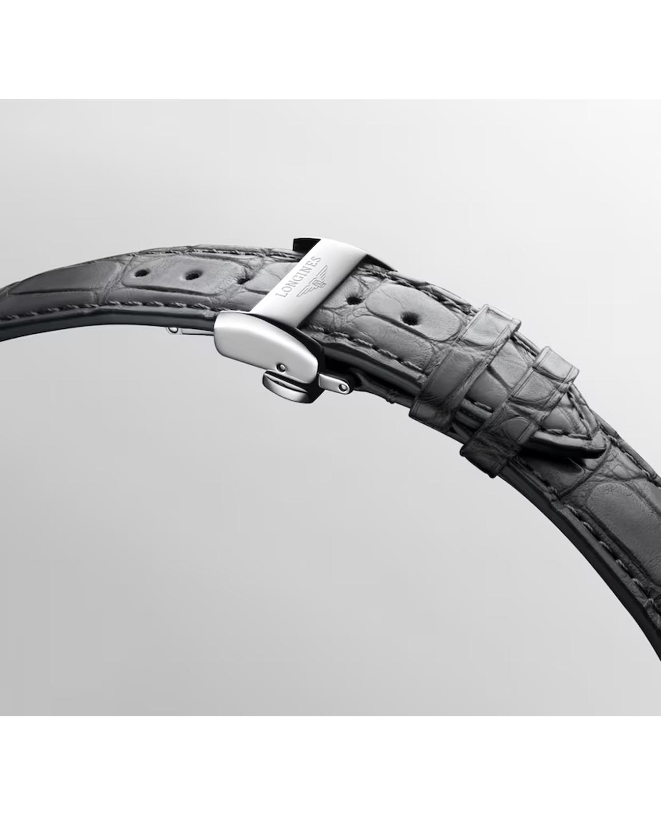 Женские швейцарские механические часы с автоподзаводом Longines Master Collection L2.843.4.93.2. Сапфировое стеклоСапфировое стеклоПрочный и надёжный материал из кристалла сапфира синтетического происхождения, характеризующийся особой твёрдостью и устойчивостью к царапинам и повреждениям. устойчивое к появлению царапин, обладающее высокой прозрачностью. Корпус часов изготовлен из нержавеющей стали. Выгравированные арабские цифры. Малая секундная стрелка в положении 6 часов. Прозрачная задняя крышка. Класс водозащиты: 30 метров, позволит защитить корпус от случайных брызг или капель дождя. Ремешок из кожи аллигатора на раскладной застёжкеРаскладная застёжкаТакой тип застёжки используется только на браслетах из металла. Она никогда не раскрывается полностью, происходит разделение на 2 и более частей. Раскладывающая застёжка снизит вероятность потери часов к минимуму..