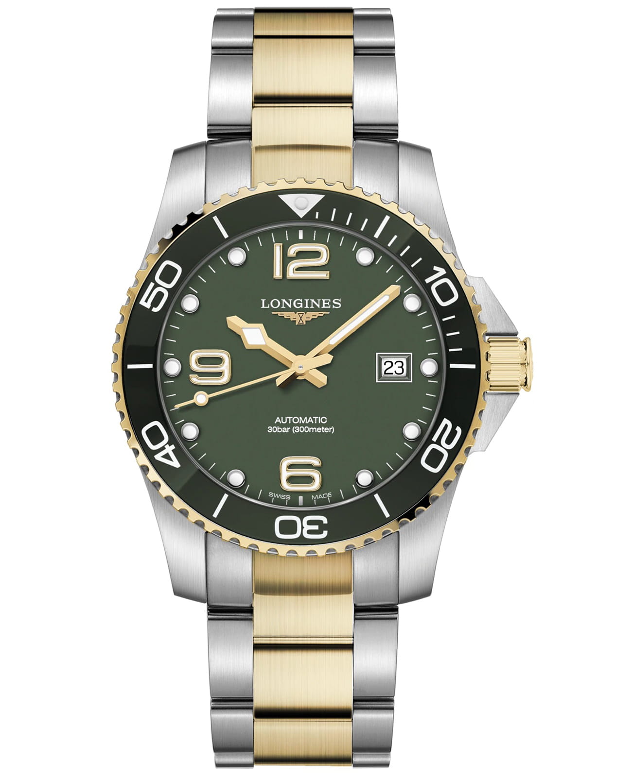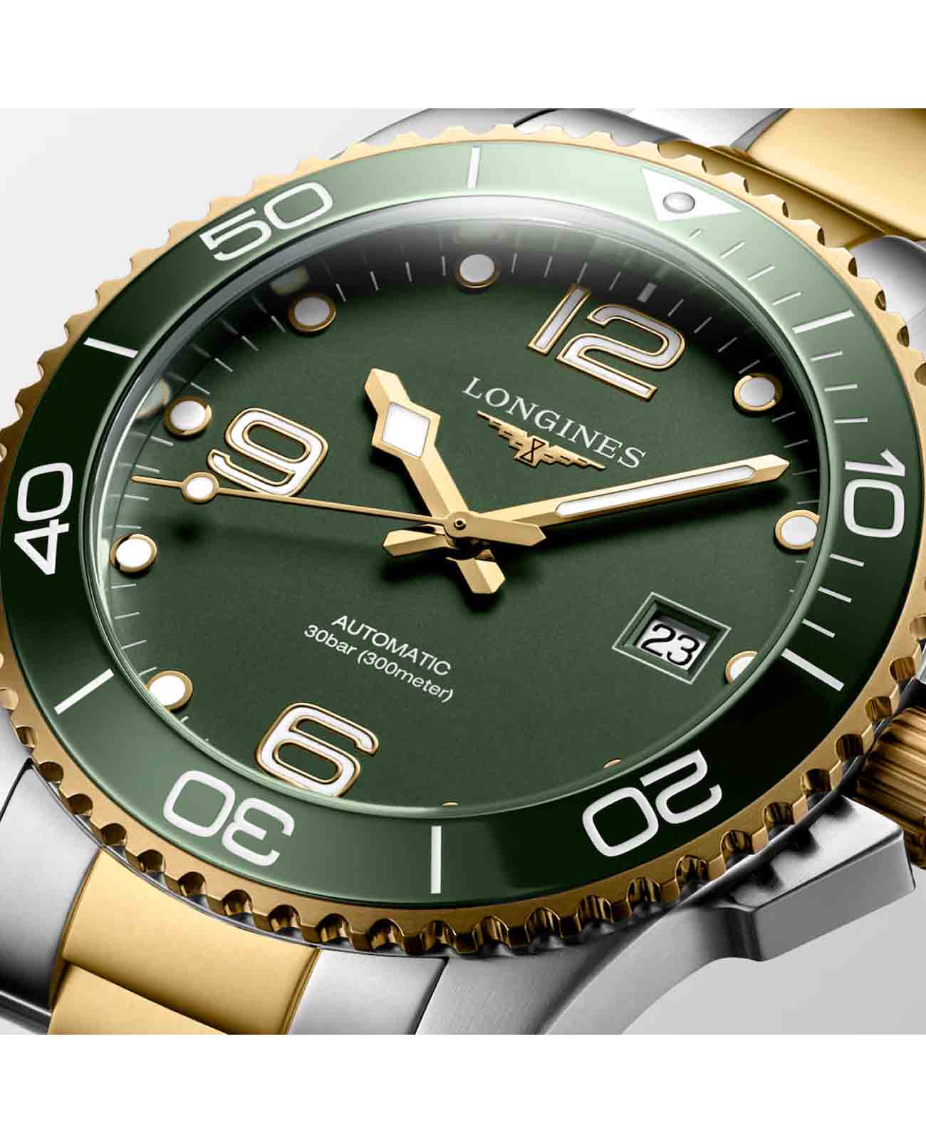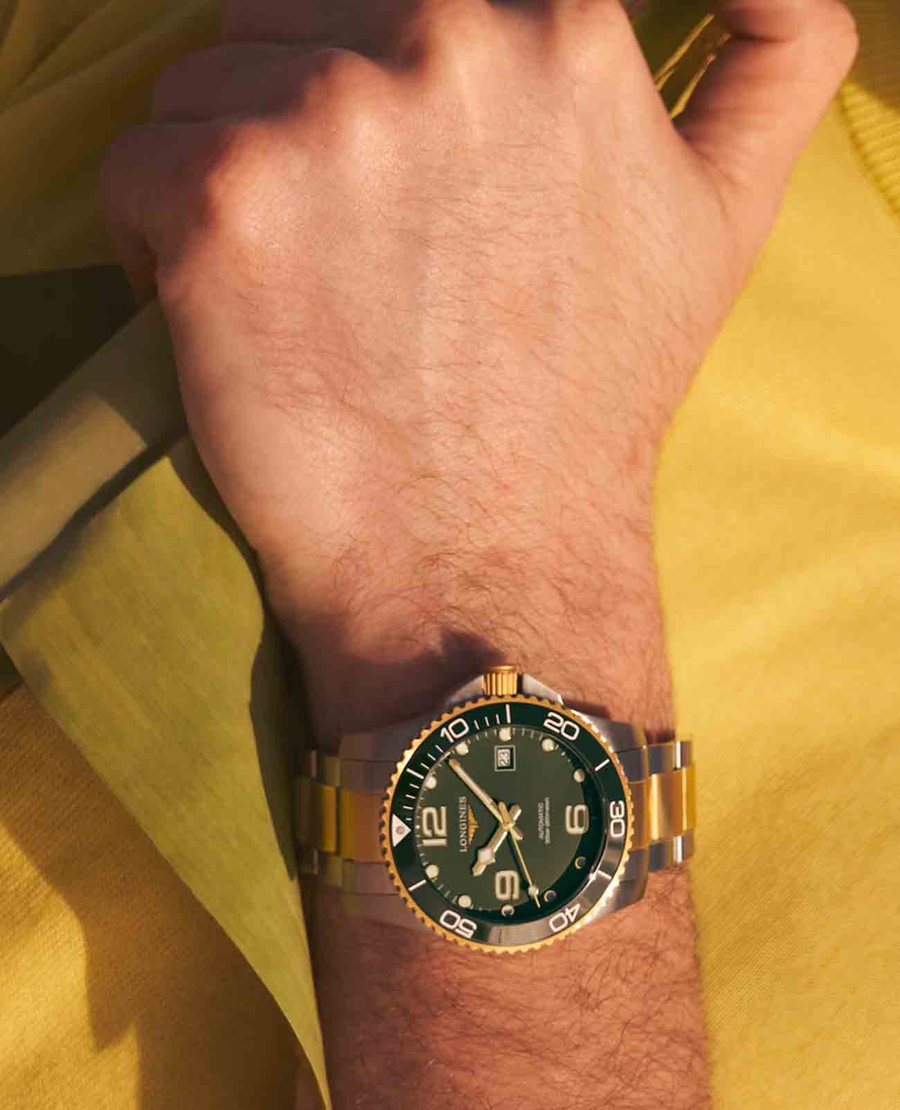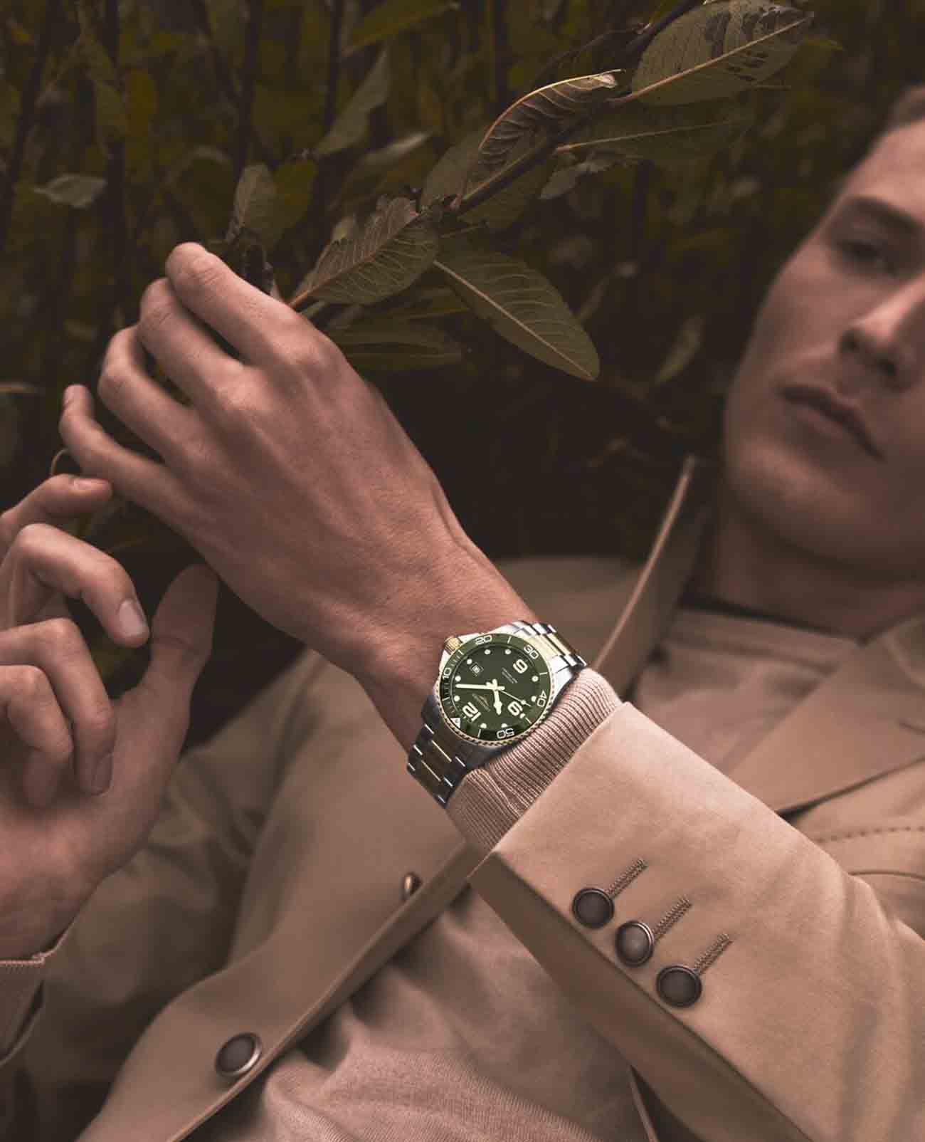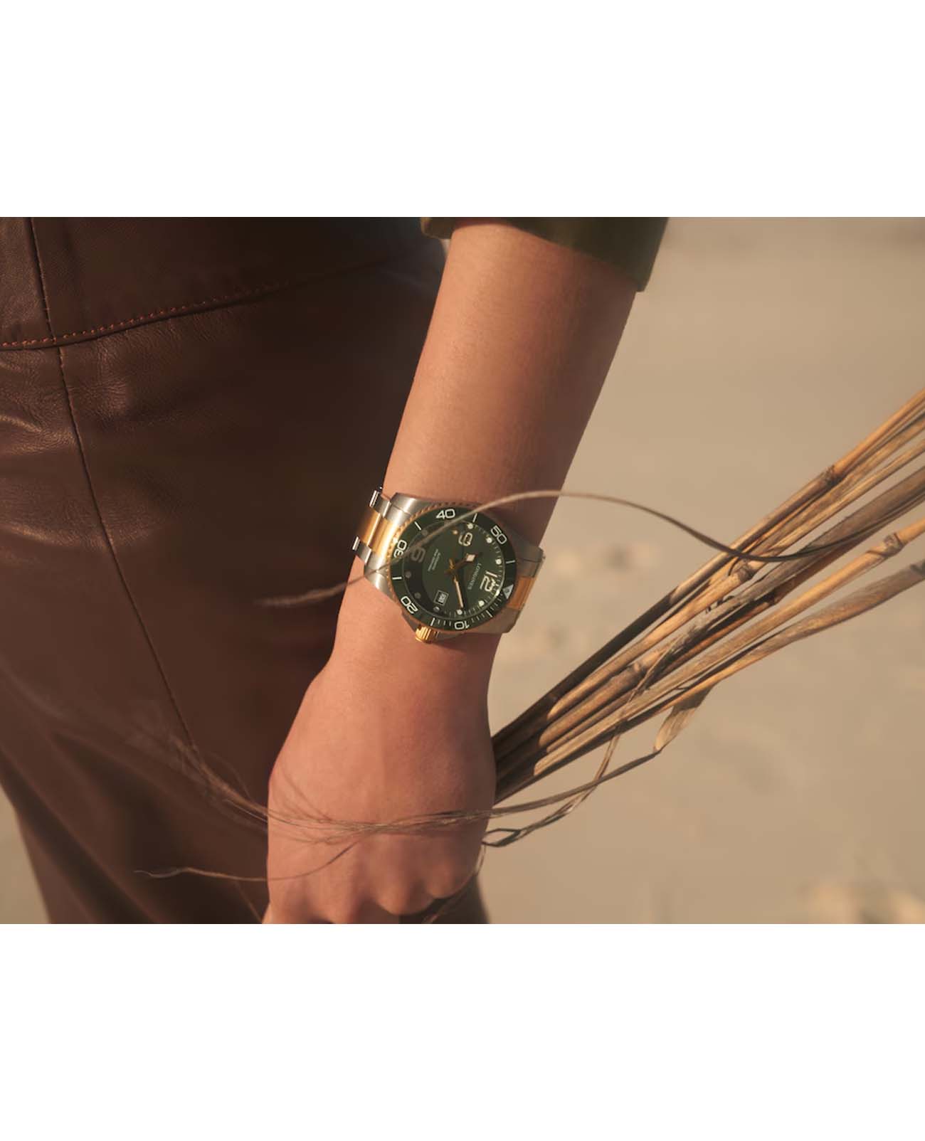 Мужские механические швейцарские часы с автоподзаводом Longines HydroConquest L3.781.3.06.7. Сапфировое стеклоСапфировое стеклоПрочный и надёжный материал из кристалла сапфира синтетического происхождения, характеризующийся особой твёрдостью и устойчивостью к царапинам и повреждениям. с антибликовым покрытием, устойчивое к мелким механическим повреждениям. Корпус часов изготовлен из нержавеющей стали. Вращающийся стальной безельБезельВнешний ободок, закрепляющий стекло. В спортивных часах так называется поворотное кольцо с делениями на циферблате, выполняет роль таймера – замеряет отрезки времени на шкале. Неподвижный безель – элемент декора. Однонаправленно вращающийся безель на дайверских часах позволяет фиксировать моменты погружения и выныривания на поверхность. с люминесцентным покрытиемЛюминесцентное покрытиеПозволяет считывать показания времени в темноте. Производители наносят на стрелки, часовые индексы, безель или поверхность циферблата светонакопительный состав, дающий холодное свечение. Superluminova из нержавеющей стали с PVD-покрытиемPVDУльтратонкое покрытие наносится в технике вакуумного напыления, сочетает в себе нитрид титана особой прочности со слоем золота или оксида хрома. Несёт в себе декоративную или защитную функцию. и керамики, защищенный от царапин, никогда не изнашивается и не выцветает. Стрелки и метки с люминесцентным покрытиемЛюминесцентное покрытиеПозволяет считывать показания времени в темноте. Производители наносят на стрелки, часовые индексы, безель или поверхность циферблата светонакопительный состав, дающий холодное свечение.. Окошко даты находится в положении 3 часа. Класс водозащиты: 300 метров, позволит плавать, нырять и заниматься другими водными видами спорта. Стальной браслет с частичным PVD-покрытиемPVDУльтратонкое покрытие наносится в технике вакуумного напыления, сочетает в себе нитрид титана особой прочности со слоем золота или оксида хрома. Несёт в себе декоративную или защитную функцию. на раскладной застёжкеРаскладная застёжкаТакой тип застёжки используется только на браслетах из металла. Она никогда не раскрывается полностью, происходит разделение на 2 и более частей. Раскладывающая застёжка снизит вероятность потери часов к минимуму. с удлинением для дайверов.