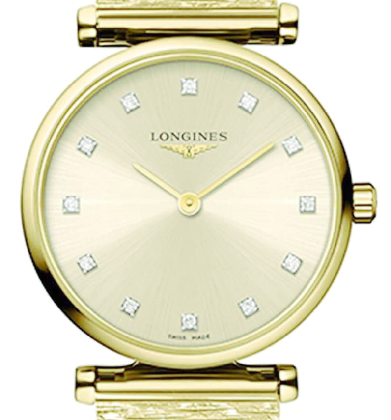 Женские швейцарские часы Longines La Grande Classique L4.209.2.33.8, кварцевый механизм с высокой точностью. Сапфировое стеклоСапфировое стеклоПрочный и надёжный материал из кристалла сапфира синтетического происхождения, характеризующийся особой твёрдостью и устойчивостью к царапинам и повреждениям. устойчивое к появлению царапин, обладающее высокой прозрачностью. Корпус часов изготовлен из стали с PVD-покрытиемPVDУльтратонкое покрытие наносится в технике вакуумного напыления, сочетает в себе нитрид титана особой прочности со слоем золота или оксида хрома. Несёт в себе декоративную или защитную функцию.. Циферблат дополнен 12 бриллиантами. Класс водозащиты: 30 метров, позволит защитить корпус от случайных брызг или капель дождя. Браслет из стали с PVD-покрытиемPVDУльтратонкое покрытие наносится в технике вакуумного напыления, сочетает в себе нитрид титана особой прочности со слоем золота или оксида хрома. Несёт в себе декоративную или защитную функцию. на раскладной застёжкеРаскладная застёжкаТакой тип застёжки используется только на браслетах из металла. Она никогда не раскрывается полностью, происходит разделение на 2 и более частей. Раскладывающая застёжка снизит вероятность потери часов к минимуму..