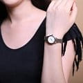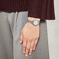 Сапфировое стеклоСапфировое стеклоПрочный и надёжный материал из кристалла сапфира синтетического происхождения, характеризующийся особой твёрдостью и устойчивостью к царапинам и повреждениям., устойчивое к царапинам и оснащенное антибликовым покрытиемАнтибликовое покрытиеСлой оксида металла в 0,13-0,3 микрон, благодаря которому стекло часов не бликует и не отражает свет. Антибликовое покрытие уменьшает отражение света в 10 раз, обеспечивая отличную читаемость показателей циферблата., не только защищает циферблат, но и обеспечивает идеальную видимость в любых условиях. Браслет, закрепленный на Застёжка "бабочка"Застёжка "бабочка"Такой вид застёжки дополняется предохранителями, помогающими избежать случайного раскрытия браслета. Обладают изящным исполнением. , добавляет часам особого шарма и удобства. Окошко даты, расположенное на отметке 3 часа, привносит нотку практичности в этот утонченный аксессуар. Прозрачная задняя крышка позволяет любоваться слаженной работой механизма. А класс водозащиты 30 метров защитит часы от случайных брызг или капель дождя, делая их надежным компаньоном в повседневной жизни.
