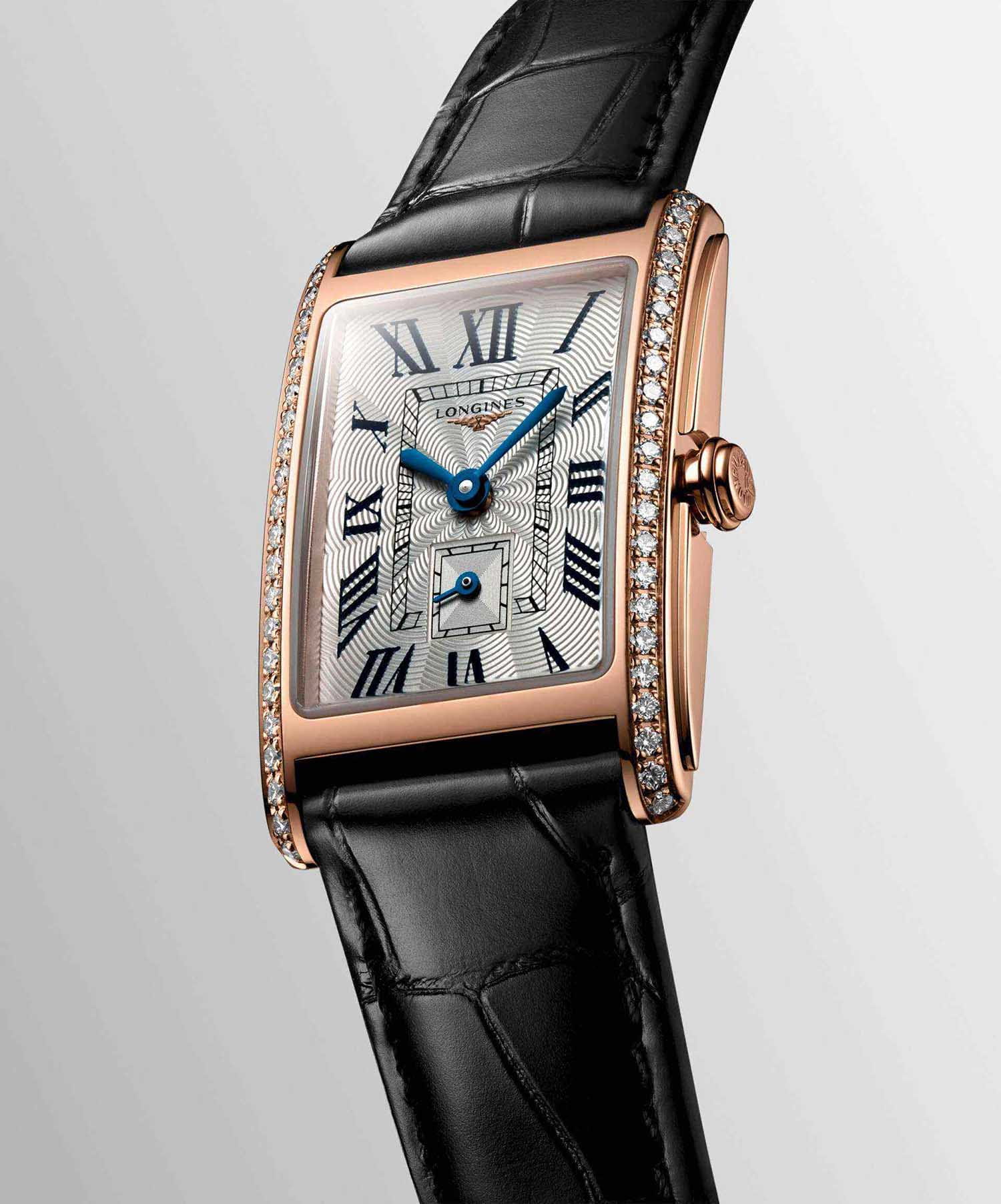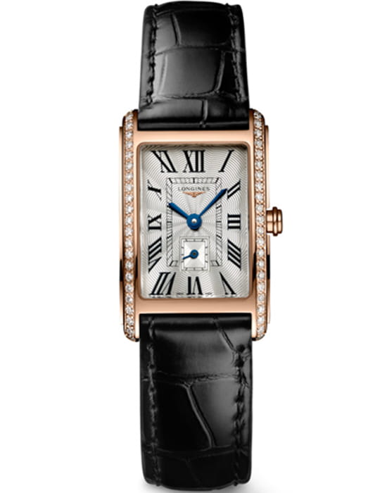 Женские изысканные швейцарские часы Longines DolceVita L5.255.9.71.0, кварцевый механизм с высокой точностью. Эти часы обладают 46 бриллиантами на корпусе и сапфировым стекломСапфировое стеклоПрочный и надёжный материал из кристалла сапфира синтетического происхождения, характеризующийся особой твёрдостью и устойчивостью к царапинам и повреждениям., многослойное антибликовое покрытиеАнтибликовое покрытиеСлой оксида металла в 0,13-0,3 микрон, благодаря которому стекло часов не бликует и не отражает свет. Антибликовое покрытие уменьшает отражение света в 10 раз, обеспечивая отличную читаемость показателей циферблата. обеспечивает превосходную прозрачность и устойчивость к царапинам, словно невидимый щит, оберегающий ваш драгоценный аксессуар. Корпус часов изготовлен из 18-каратного золота18-каратное золотоОбозначение по каратной системе пробирования, оно показывает, сколько драгоценного металла содержится в изделии. 18 карат - в составе 75% чистого золота, соответствует 750 пробе.