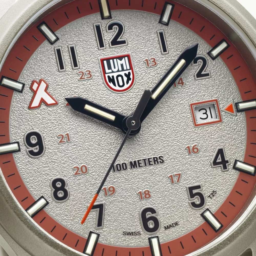Luminox Bear Grylls Survival Series XB.3717 — мужская модель, созданная для экстремальных условий с акцентом на надёжность и максимальную функциональность. Корпус диаметром 43 мм выполнен из алюминия (специальный сплав ALUMI-NOX, легкий и коррозионностойкий). Защитную роль выполняет сапфировое стеклоСапфировое стеклоПрочный и надёжный материал из кристалла сапфира синтетического происхождения, характеризующийся особой твёрдостью и устойчивостью к царапинам и повреждениям. с антибликовым покрытиемАнтибликовое покрытиеСлой оксида металла в 0,13-0,3 микрон, благодаря которому стекло часов не бликует и не отражает свет. Антибликовое покрытие уменьшает отражение света в 10 раз, обеспечивая отличную читаемость показателей циферблата., обеспечивающим отличную читаемость под любым углом. В основе лежит швейцарский кварцевый механизм с индикацией часов, минут, секунд и даты. Водозащита 100 м (10 бар) соответствует стандартам дайверских часов, подходит для плавания и сноркелинга, но не для глубоководного дайвинга. Благодаря технологии LLTLLTLLT — это автономный механизм подсветки, основанный на использовании микроскопических газонаполненных элементов. Специальные герметичные капсулы из боросиликатного стекла, интегрированные в циферблат, генерируют свечение без необходимости подключения к внешним источникам энергии. Для их работы не требуется ни дополнительный свет, ни механическое воздействие (например, нажатие кнопки). Свечение возникает благодаря химическому процессу: реакция между тритием, заключенным в капсулах, и люминофорным покрытием создает стабильное автономное освещение. Технология обеспечивает энергетическую независимость и долговечность подсветки.-подсветки, эти часы гарантируют превосходную видимость в темноте на протяжении 25 лет. Окошко даты находится в положении 3 часа. Модель укомплектована каучуковым ремешком песочного цвета с классической застёжкой, что обеспечивает комфортное ношение и фиксацию на запястье. Часы разработаны для экстремальных условий и активного образа жизни. Они сочетают в себе легкость, прочность и отличную видимость в любое время суток.
