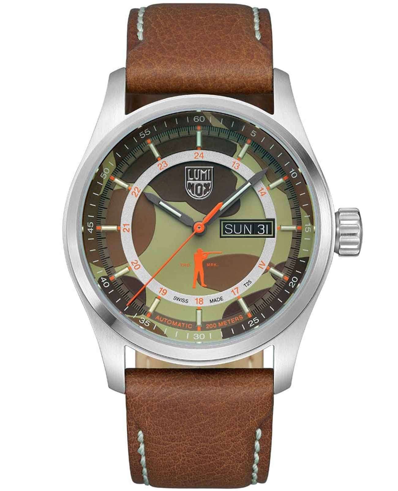 Часы Luminox Ball and Buck Special Edition Atacama Field XL.1907.BB.SET Automatic представляют собой уникальное сочетание надежности и стиля, объединяя качество и производительность Luminox с элегантным дизайном Ball and Buck. В основе этих часов лежит швейцарский автоматический механизм SELLITA SW220-1 HH5, который помещен в водонепроницаемый корпус из нержавеющей стали 316L. Каждый экземпляр проходит индивидуальное тестирование на глубину до 200 метров, что делает их идеальными для активного отдыха. Прозрачная задняя крышка позволяет увидеть механизм и автоматический ротор, демонстрируя мастерство швейцарских часовщиков. Дизайн часов дополнен оригинальным камуфляжным узором Ball and Buck на циферблате и яркими оранжевыми акцентами, включая инновативную технологию Luminox Light, обеспечивающую постоянное свечение без подзарядки до 25 лет. Коричневый кожаный ремешок с кремовой одноигольной строчкой и классической застежкой добавляют этим часам изысканности и практичности. В комплекте также есть инструмент для замены ремешка. Особая деталь дизайна отдает дань уважения четырем поколениям спортивного наследия Ball and Buck. Часы оснащены сапфировым стекломСапфировое стеклоПрочный и надёжный материал из кристалла сапфира синтетического происхождения, характеризующийся особой твёрдостью и устойчивостью к царапинам и повреждениям. с антибликовым покрытиемАнтибликовое покрытиеСлой оксида металла в 0,13-0,3 микрон, благодаря которому стекло часов не бликует и не отражает свет. Антибликовое покрытие уменьшает отражение света в 10 раз, обеспечивая отличную читаемость показателей циферблата. и фиксированной рамкой, что гарантирует их долговечность и четкость отображения времени. Эти часы являются идеальным выбором для тех, кто ценит надежность, стиль и качество, которое выдержит испытание временем.