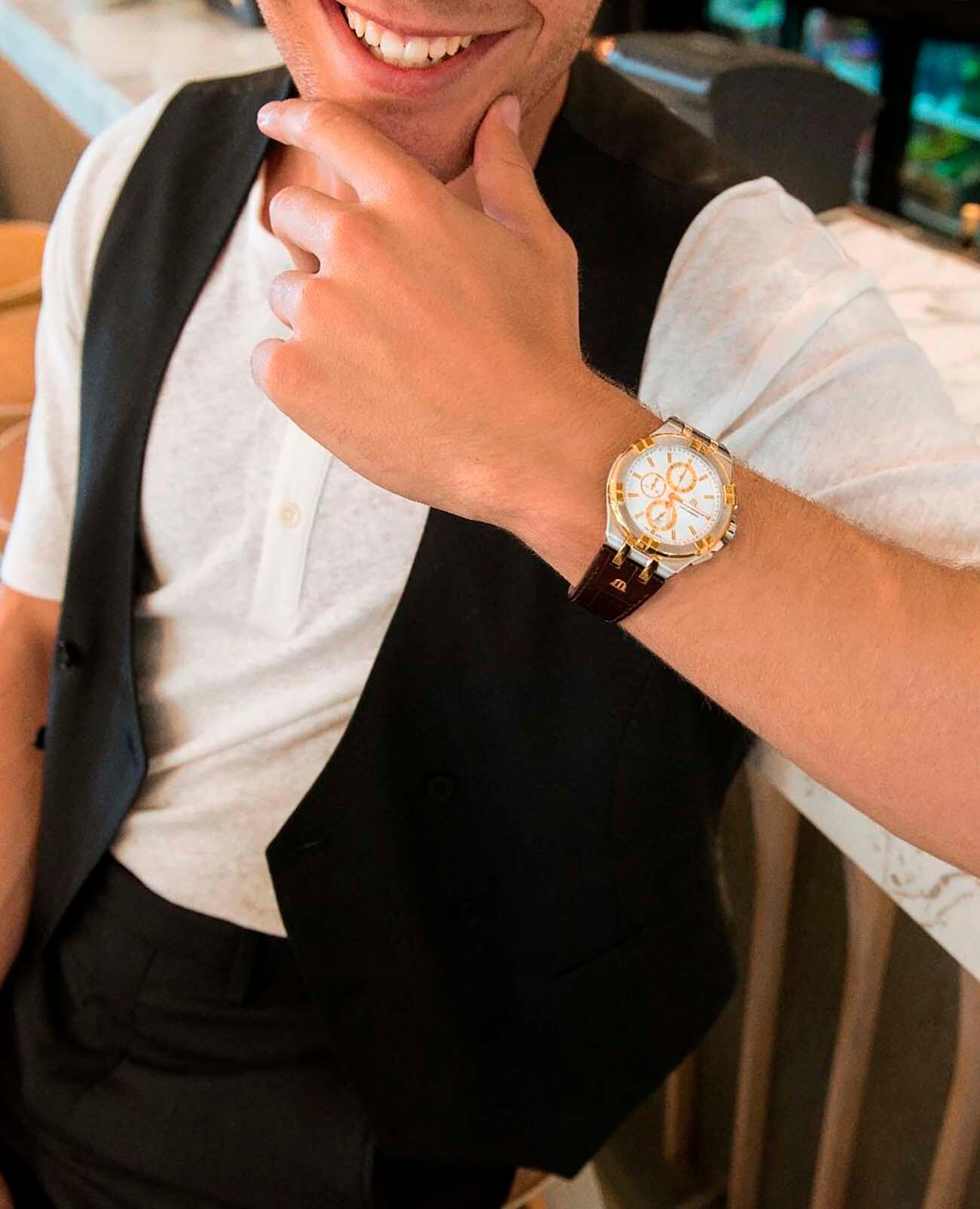 Мужские швейцарские часы с хронографом Maurice Lacroix Aikon Chronograph AI1018-PVY11-132-1, кварцевый механизм с высокой точностью. Сапфировое стекло устойчивое к появлению царапин, обладающее высокой прозрачностью. Класс водозащиты: 100 метров, позволит плавать, нырять и заниматься другими водными видами спорта. Корпус часов изготовлен из стали, цвета.