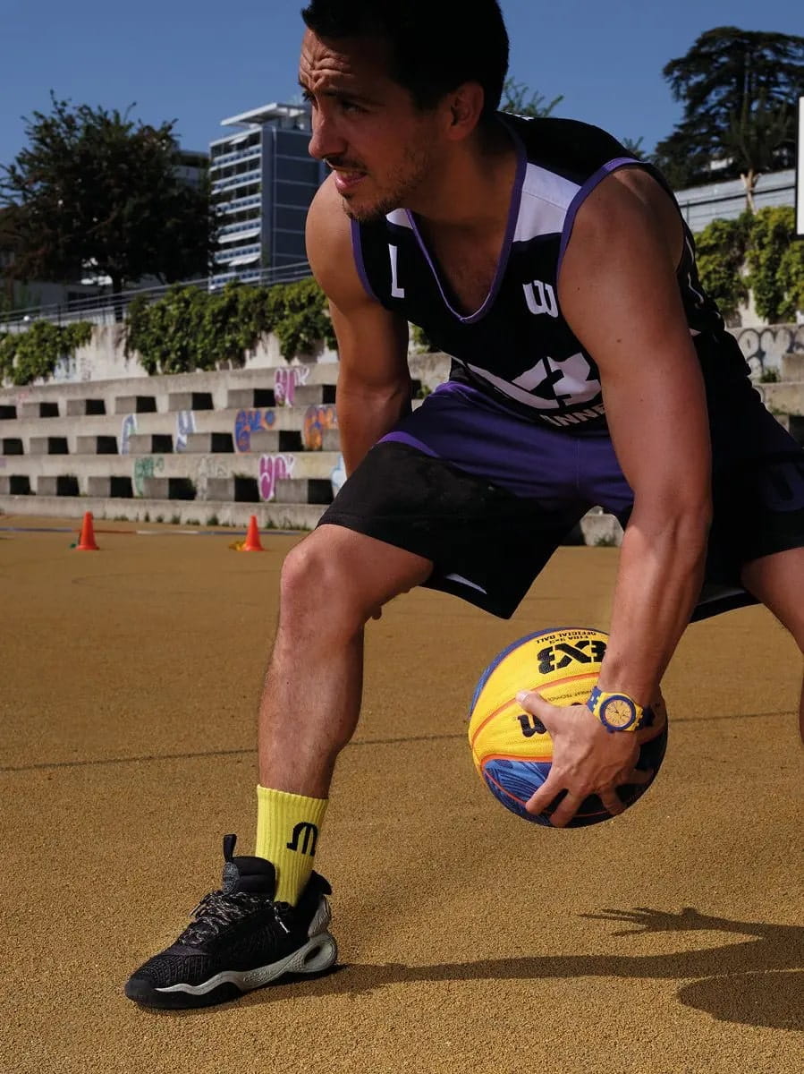 Новое специальное издание AIKON #tide FIBA3x3, наполненное энергией. Эти часы с баскетбольной тематикой, помещенные в 40-миллиметровый корпус, оснащены плоским сапфировым стеклом, улучшающим читаемость, а кварцевый механизм обеспечивает точность в мире, где секунды на счету. На циферблатах нанесен логотип "3x3", выполненный в виде замысловатого мотива, а на задней крышке корпуса также выбит логотип ‘3x3’. Мужские швейцарские кварцевые часы Maurice Lacroix Aikon Tide Special Edition FIBA 3x3 AI2008-68YZ8-800-0. Сапфировое стеклоСапфировое стеклоПрочный и надёжный материал из кристалла сапфира синтетического происхождения, характеризующийся особой твёрдостью и устойчивостью к царапинам и повреждениям. устойчивое к появлению царапин, обладающее высокой прозрачностью. Желтый циферблат. Стрелки и метки с люминесцентным покрытиемЛюминесцентное покрытиеПозволяет считывать показания времени в темноте. Производители наносят на стрелки, часовые индексы, безель или поверхность циферблата светонакопительный состав, дающий холодное свечение.. Класс водозащиты: 100 метров, позволит плавать, нырять и заниматься другими водными видами спорта. Окошко даты находится в положении 3 часов. Корпус выполнен из переработанного пластика, ранее загрязнявшего Мировой океан. Каучуковый ремешок с классической застежкой.