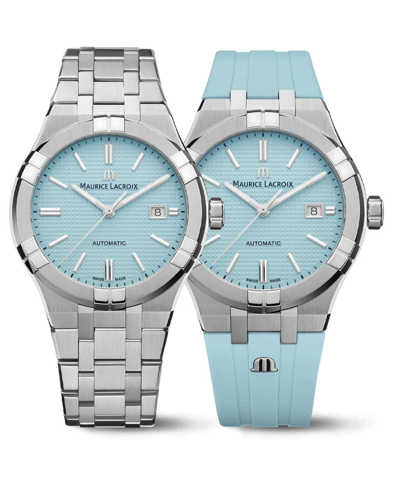 Швейцарские часы Maurice Lacroix Aikon Automatic AI6008-SS00F-431-C, воплощающие современный стиль и безупречное швейцарское качество. Корпус из нержавеющей стали диаметром 42 мм и высотой 11 мм совмещает матовую и полированную отделку, придавая часам изысканный вид. Сапфировое стеклоСапфировое стеклоПрочный и надёжный материал из кристалла сапфира синтетического происхождения, характеризующийся особой твёрдостью и устойчивостью к царапинам и повреждениям. с двойным антибликовым покрытиемАнтибликовое покрытиеСлой оксида металла в 0,13-0,3 микрон, благодаря которому стекло часов не бликует и не отражает свет. Антибликовое покрытие уменьшает отражение света в 10 раз, обеспечивая отличную читаемость показателей циферблата. надежно защищает гильошированный голубой циферблат с узором Clous de Paris. Часы снабжены задней крышкой с сапфировым стеклом, позволяющим увидеть изысканно декорированный автоматический механизм ML115, обладающий запасом хода в 38 часов. БезельБезельВнешний ободок, закрепляющий стекло. В спортивных часах так называется поворотное кольцо с делениями на циферблате, выполняет роль таймера – замеряет отрезки времени на шкале. Неподвижный безель – элемент декора. Однонаправленно вращающийся безель на дайверских часах позволяет фиксировать моменты погружения и выныривания на поверхность. с узнаваемым дизайном из шести "когтей" и завинчивающаяся заводная головка подчеркивают уверенный характер модели. Часы водонепроницаемы до 20 ATM, что делает их отличным выбором для активного образа жизни. Стрелки с люминесцентным покрытиемЛюминесцентное покрытиеПозволяет считывать показания времени в темноте. Производители наносят на стрелки, часовые индексы, безель или поверхность циферблата светонакопительный состав, дающий холодное свечение., что облегчает чтение времени даже в условиях слабого освещения. На 3 часах расположено окошко с датой, добавляющее функциональности. Часы комплектуются браслетом из нержавеющей стали, и застежка «бабочка»Застёжка "бабочка"Такой вид застёжки дополняется предохранителями, помогающими избежать случайного раскрытия браслета. Обладают изящным исполнением. , раскладывающаяся при нажатии кнопок двойной блокировки и гравировкой Maurice Lacroix завершают образ, обеспечивая удобство и стиль. Особенность этой модели - дополнительный резиновый ремешок голубого цвета со стандартной застежкой.