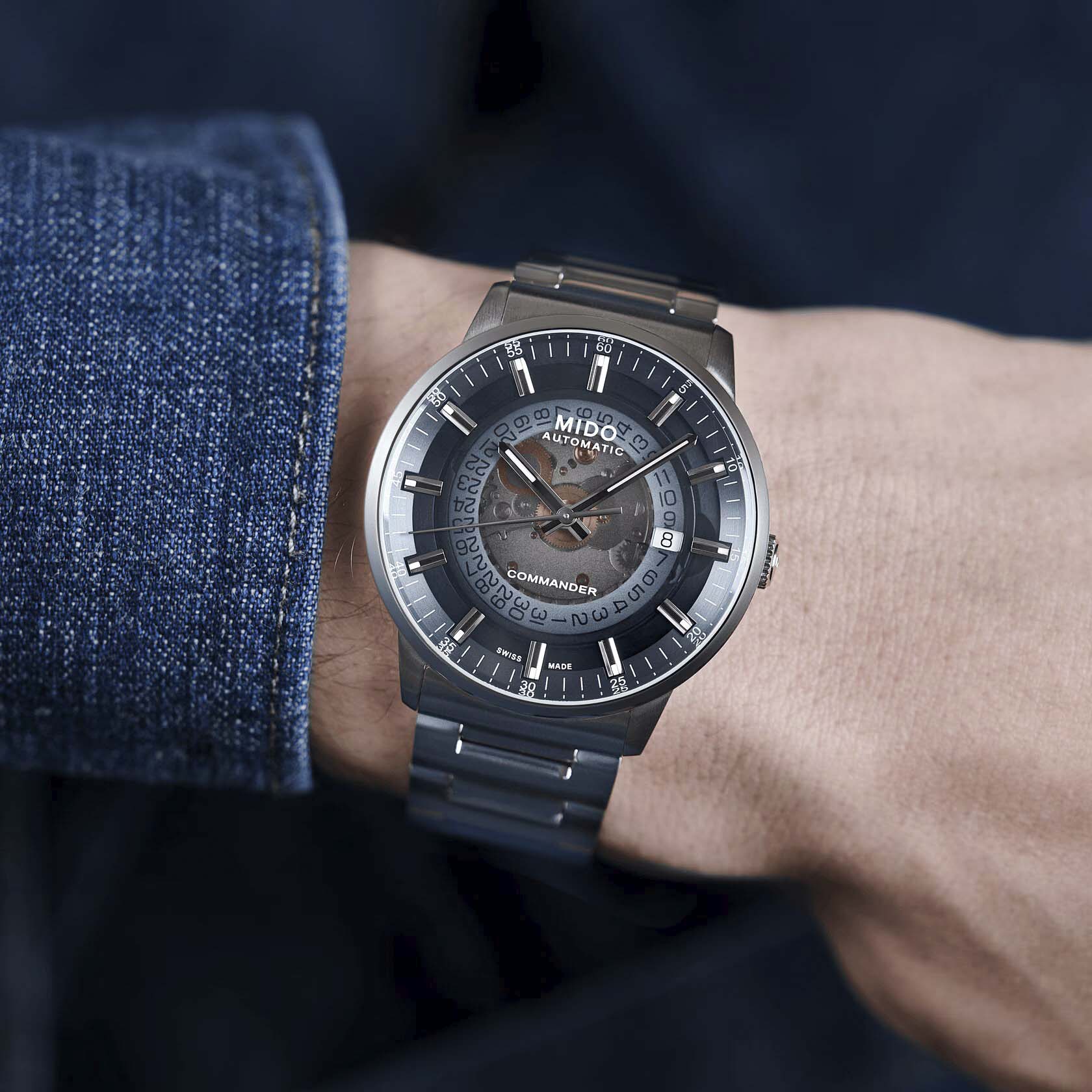 Часы MIDO Commander Gradient (артикул M021.407.11.411.01) — элегантная модель, сочетающая современный дизайн и швейцарское качество. Корпус диаметром 40 мм выполнен из нержавеющей стали с водозащитой до 5 бар (50 метров). Полупрозрачный синий градиентный циферблат с накладными часовыми метками, покрытыми Super-LumiNova®Люминесцентное покрытиеПозволяет считывать показания времени в темноте. Производители наносят на стрелки, часовые индексы, безель или поверхность циферблата светонакопительный состав, дающий холодное свечение., защищён сапфировым стекломСапфировое стеклоПрочный и надёжный материал из кристалла сапфира синтетического происхождения, характеризующийся особой твёрдостью и устойчивостью к царапинам и повреждениям..