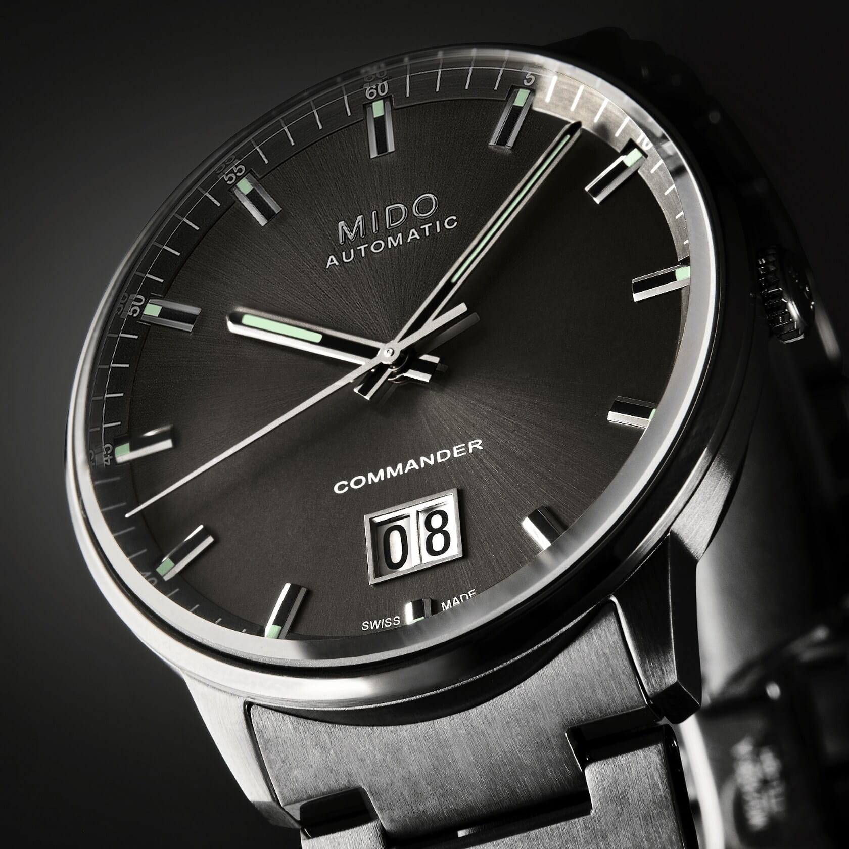 Мужские швейцарские механические часы Mido Commander Big Date M021.626.33.061.00, механический механизм (автоматический калибр) с высокой точностью. Часы Commander Big Date выпущены в честь 100-летнего юбилея марки. Крупное окошко даты в положении «6 часов» обеспечивает предельно удобную читаемость показаний. Сатинированный циферблат с солнечным узором отличается удивительной чистотой и строгостью, которую подчеркивает полированный безель. Сапфировое стекло устойчивое к появлению царапин, обладающее высокой прозрачностью. Класс водозащиты: 50 метров, позволит защитить корпус от случайных брызг или капель дождя. Корпус часов изготовлен из стали, с PVD покрытием черного цвета.