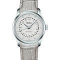 Женские швейцарские механические часы с системой автоматического подзавода Mido Belluna M024.207.16.036.00, механический механизм (автоматический калибр) с высокой точностью. Сапфировое стеклоСапфировое стеклоПрочный и надёжный материал из кристалла сапфира синтетического происхождения, характеризующийся особой твёрдостью и устойчивостью к царапинам и повреждениям. устойчивое к появлению царапин, обладающее высокой прозрачностью. Класс водозащиты: 50 метров, позволит защитить корпус от случайных брызг или капель дождя. Корпус часов изготовлен из стали. Шикарная классика в стильном исполнении. Бриллианты вместо разметки. Циферблат выполнен с расходящимся гильоше волнами. Индикация даты выполнена в виде апертуры.